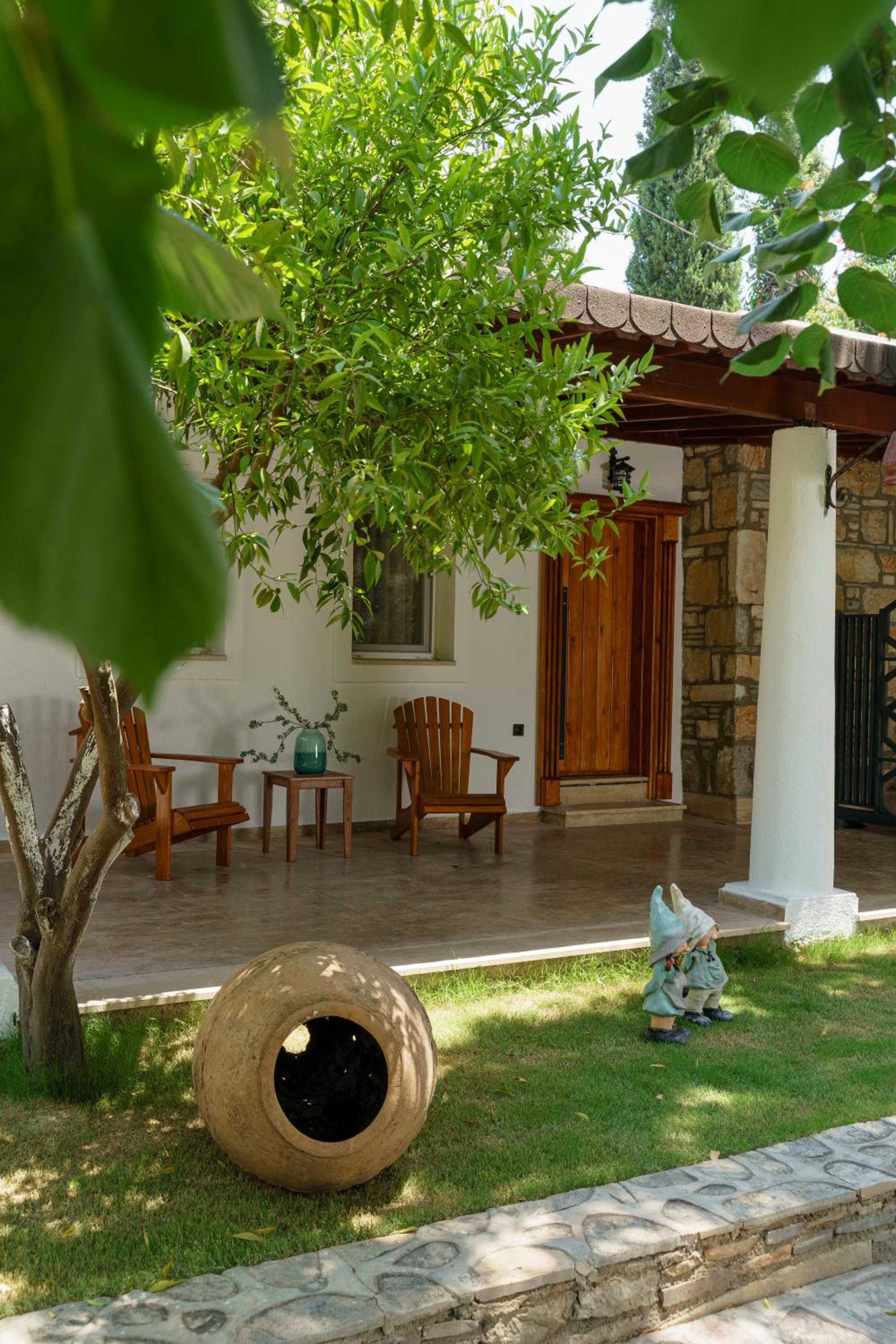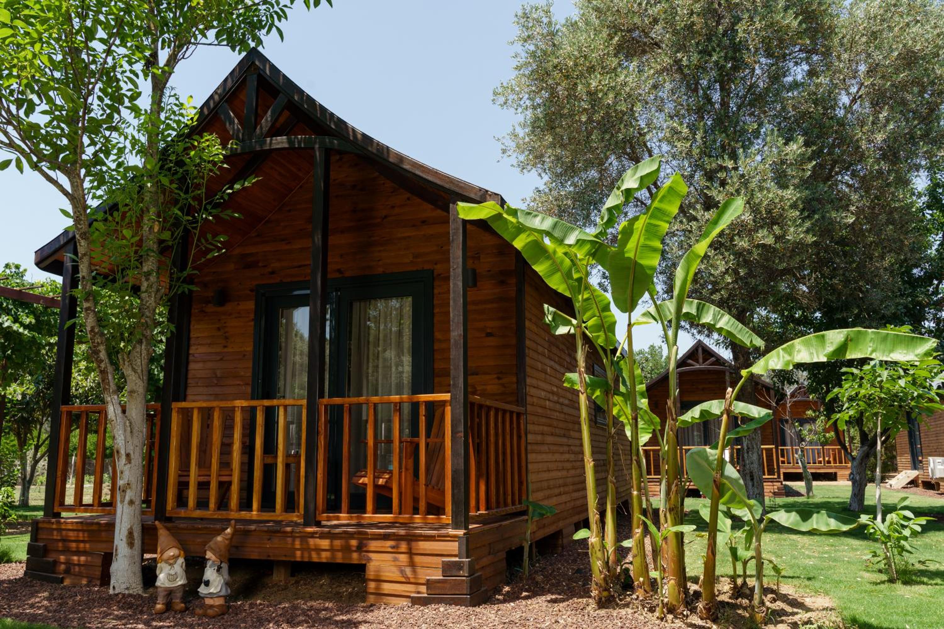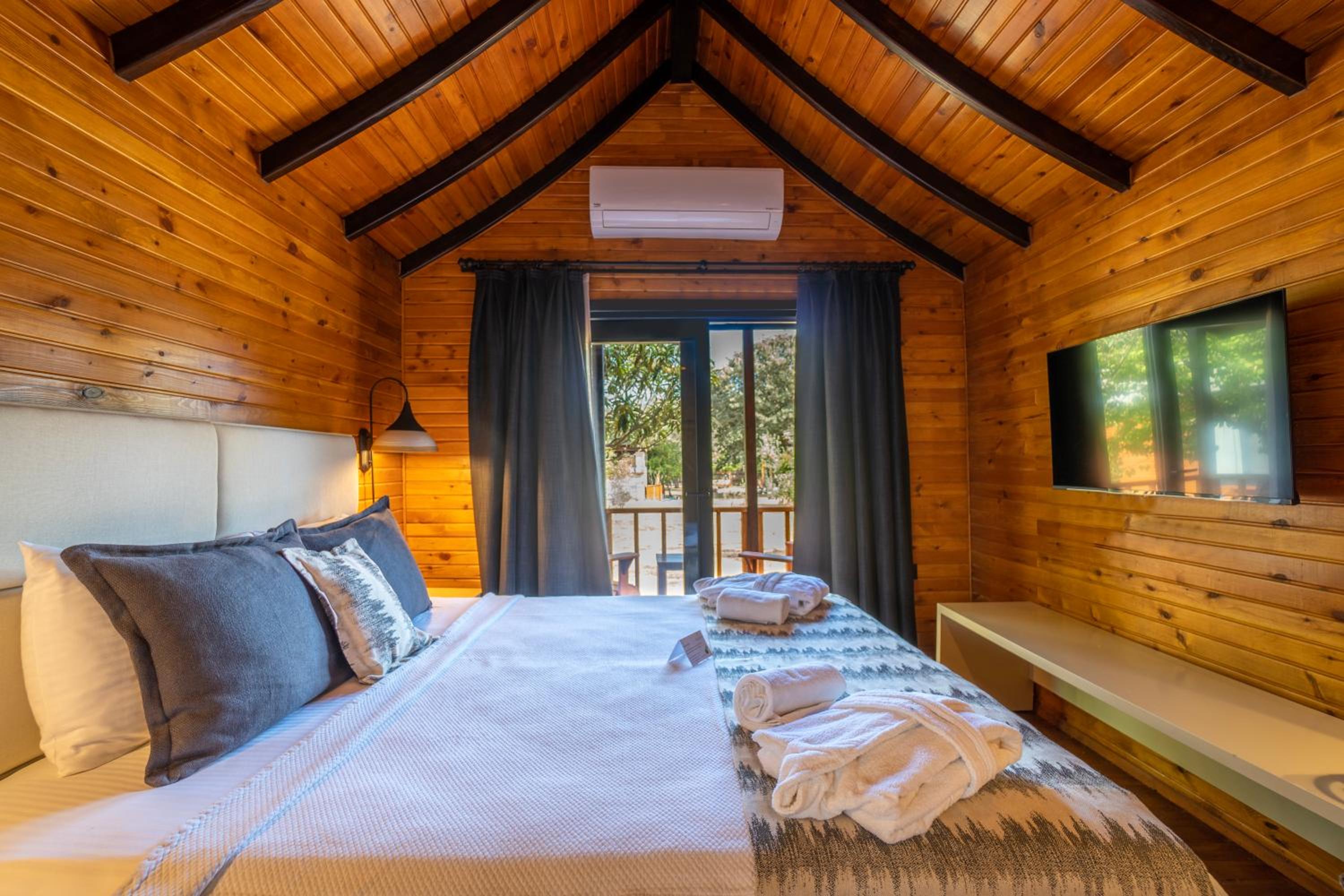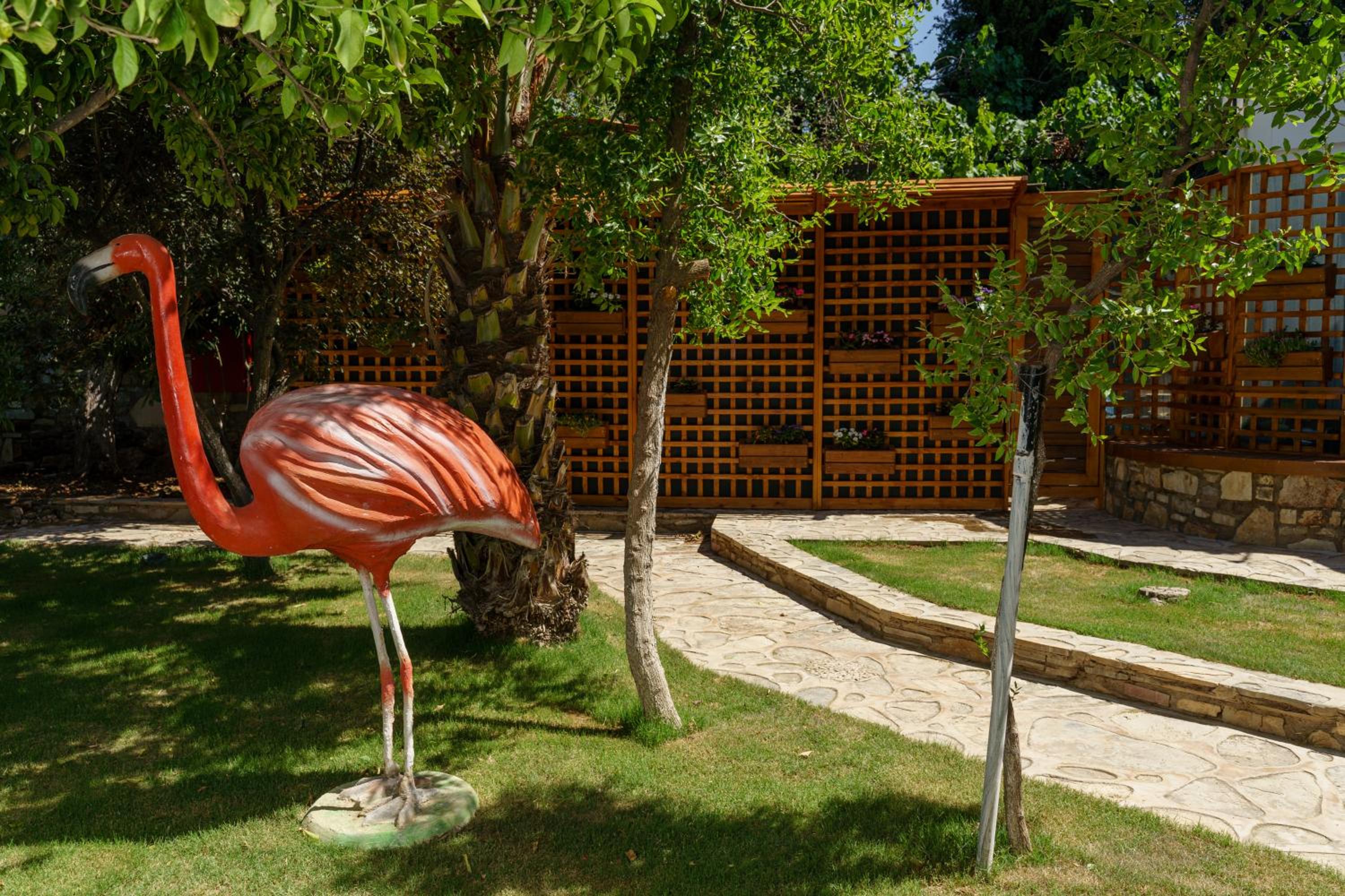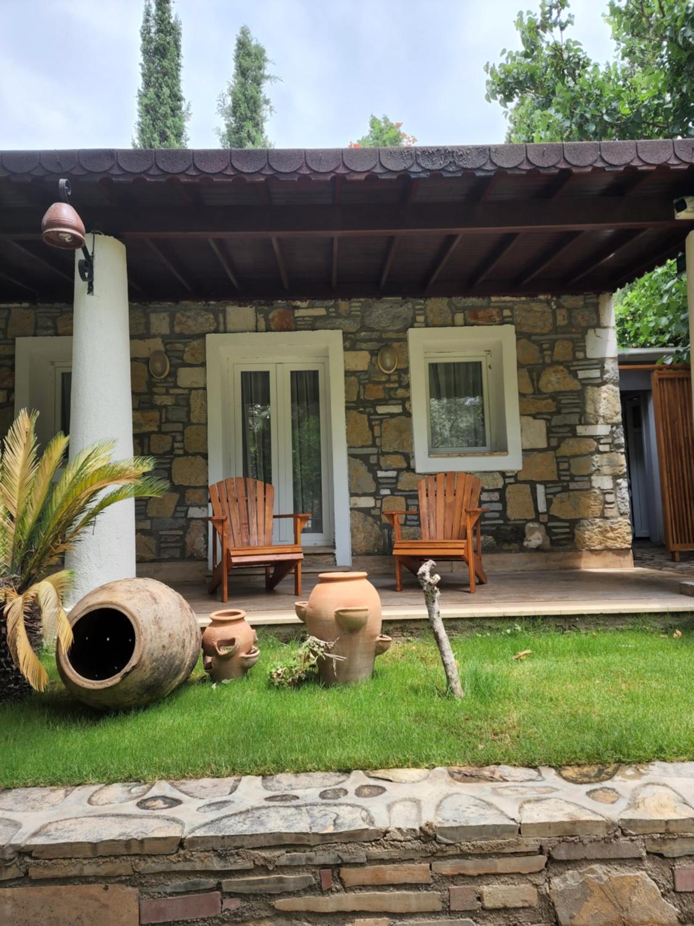 Lovely wooden bungalow set in gardens with olive, fig and pomegranate trees. Fabulous pool with plenty of sun loungers and choice of sun or shade. Owner cankat friendly and welcoming as were most of other staff who couldn’t do enough to help, special mention to Tarken. Our air conditioning worked well. Food was also very good. 15 min walk into Bitez with a selection of bars, restaurants and supermarkets. We will be back