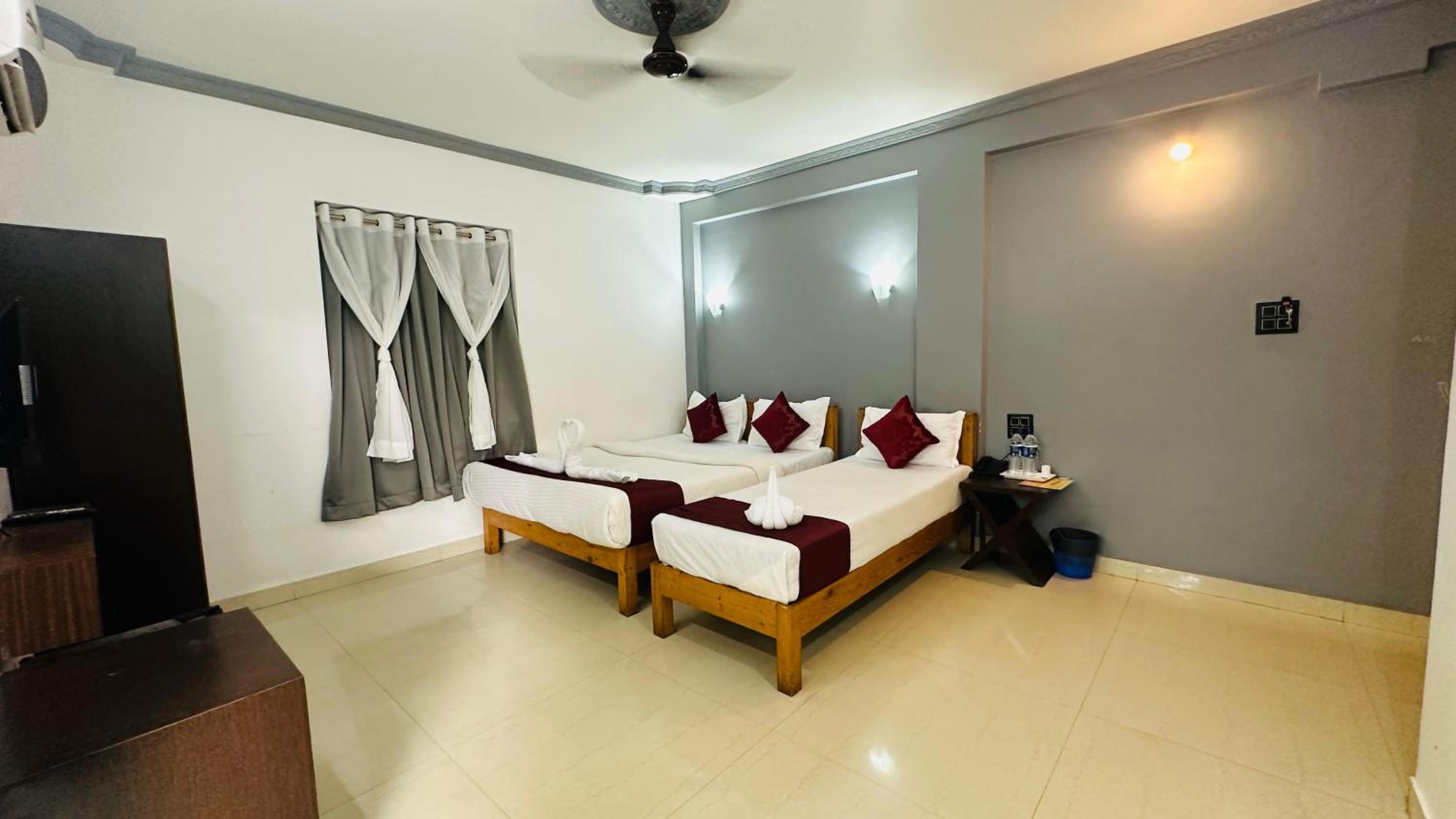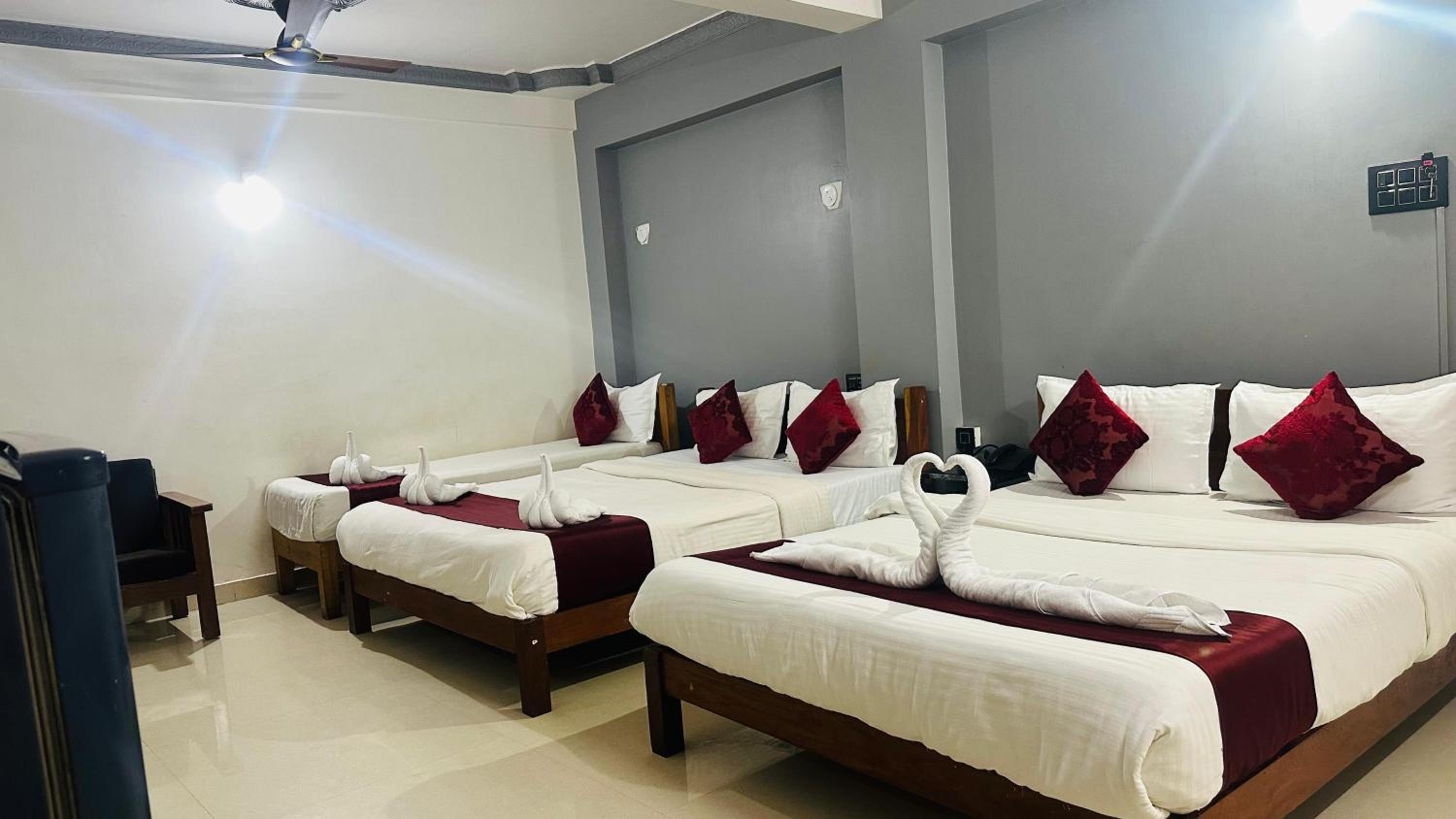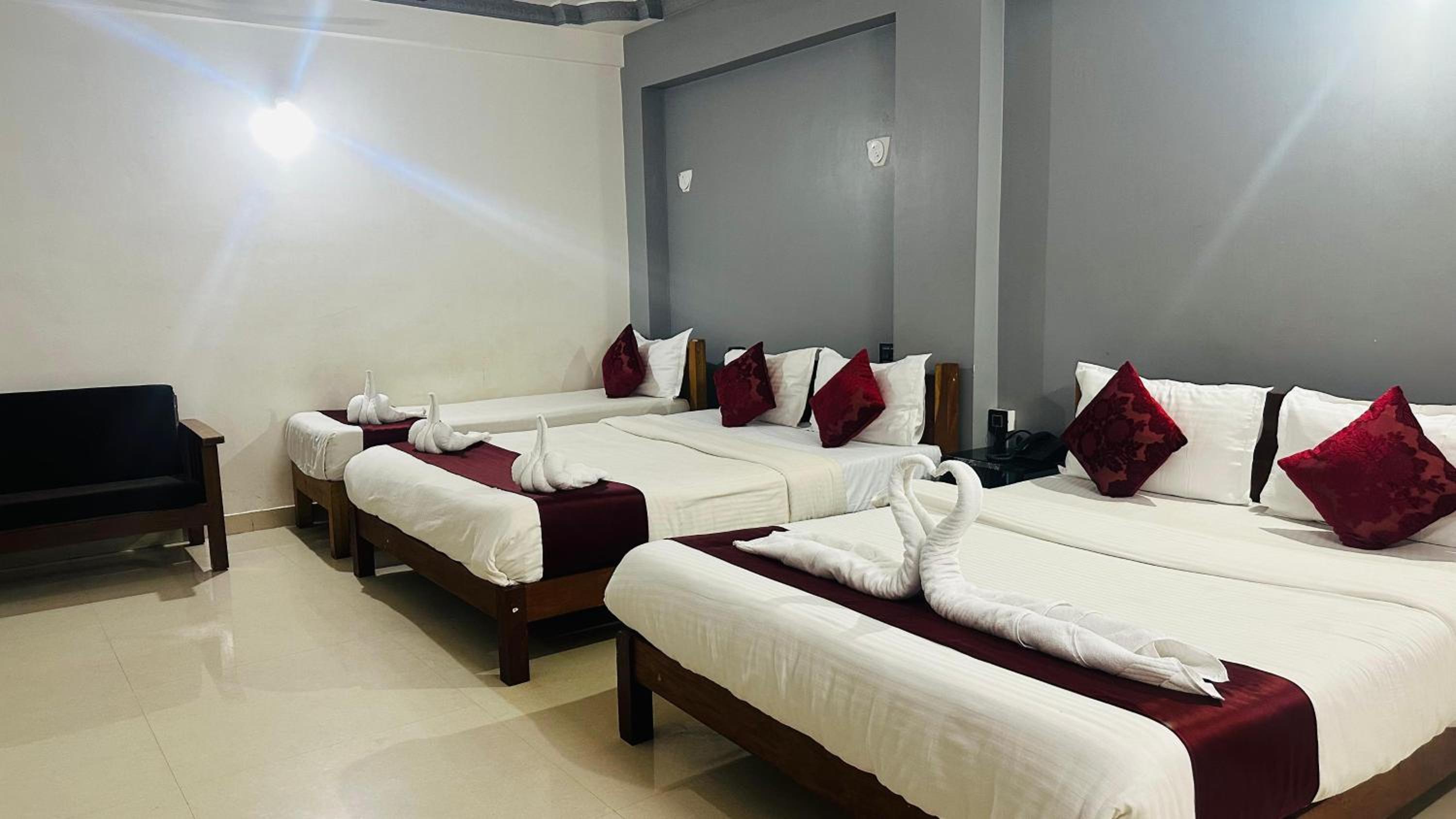 The rooms were extremely small, barely accommodating one bed and a single-door wardrobe, making it feel cramped and uncomfortable. When we requested cleaning, the staff simply remade the bed with the same bedsheet instead of replacing it, which was unhygienic and unacceptable.