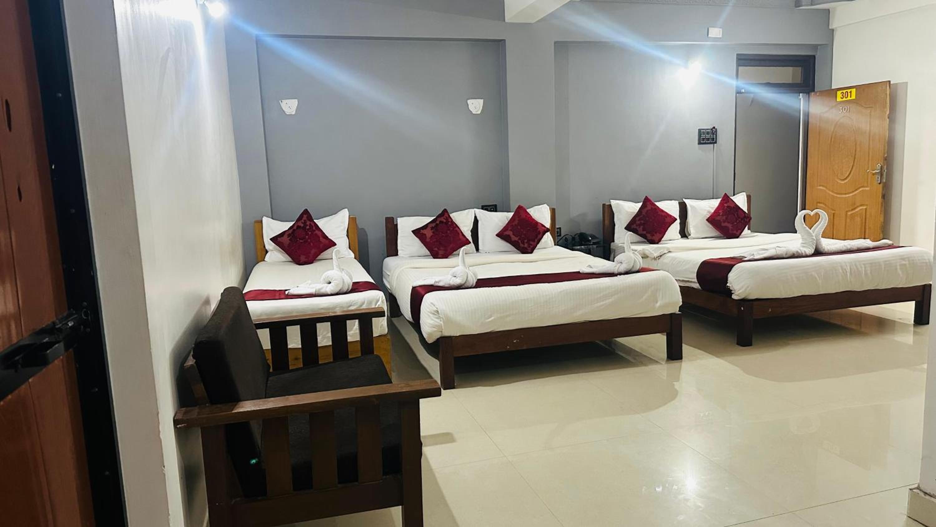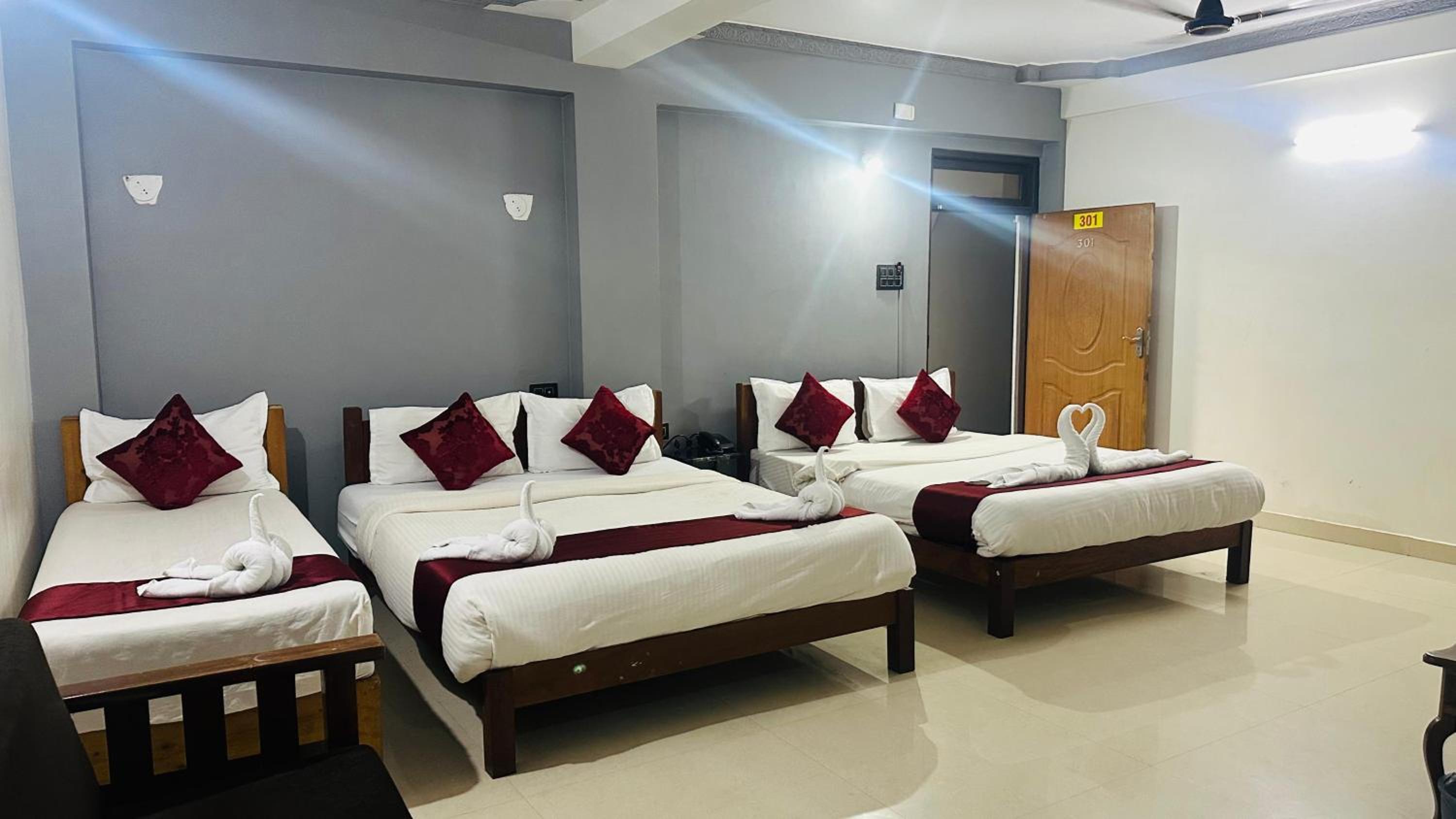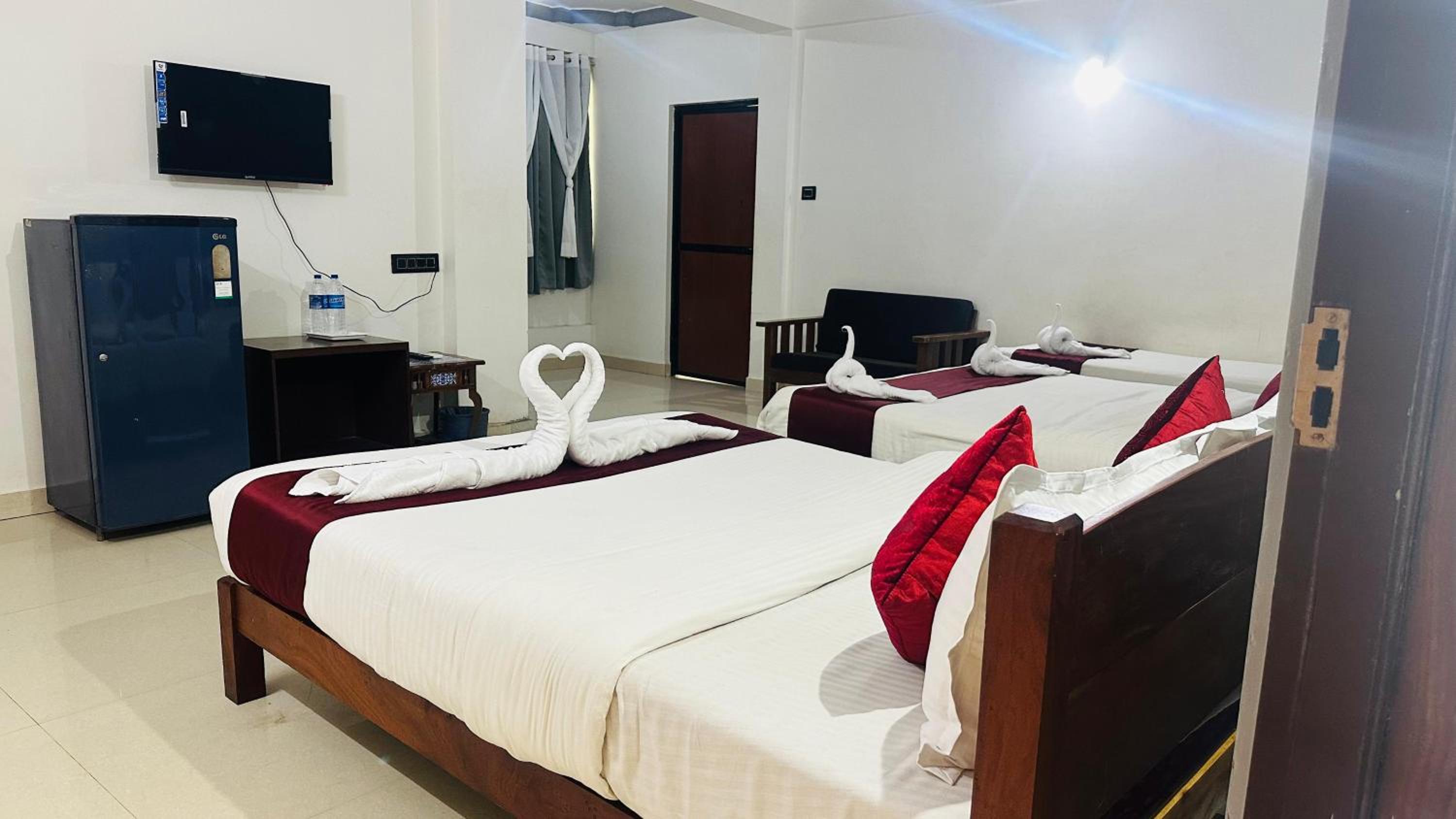 The rooms were extremely small, barely accommodating one bed and a single-door wardrobe, making it feel cramped and uncomfortable. When we requested cleaning, the staff simply remade the bed with the same bedsheet instead of replacing it, which was unhygienic and unacceptable.