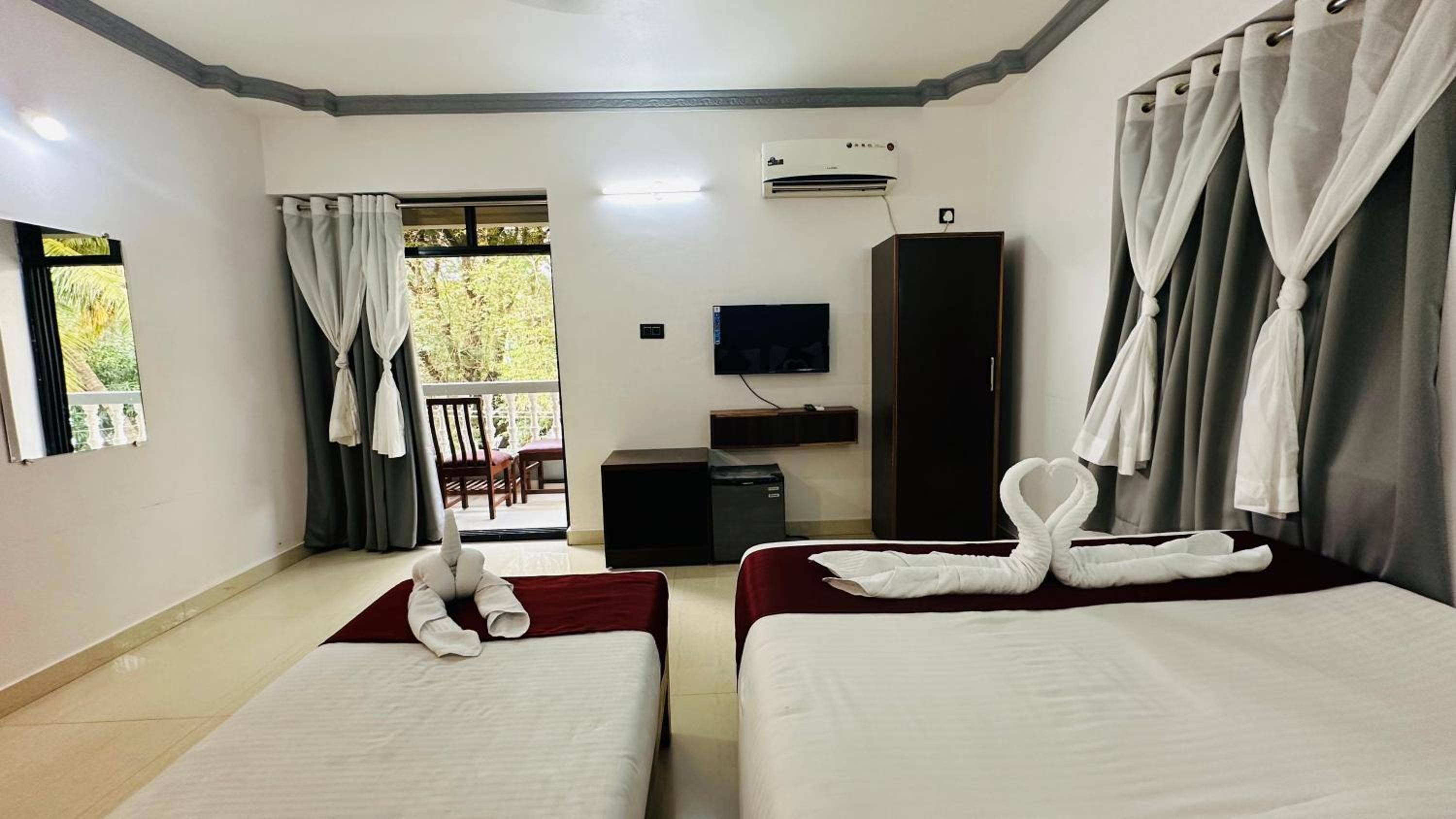 Hotel Baga Bay 200 Meters From Baga Beach offers air-conditioned rooms with free WiFi and private bathrooms. Rooms also feature a flat-screen TV and safety deposit box, with some rooms offering balconies and city views.
