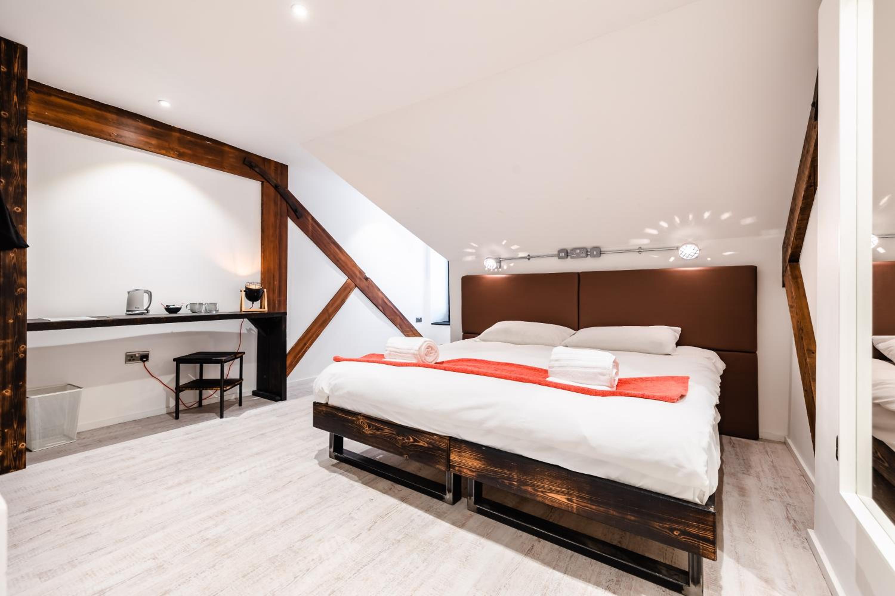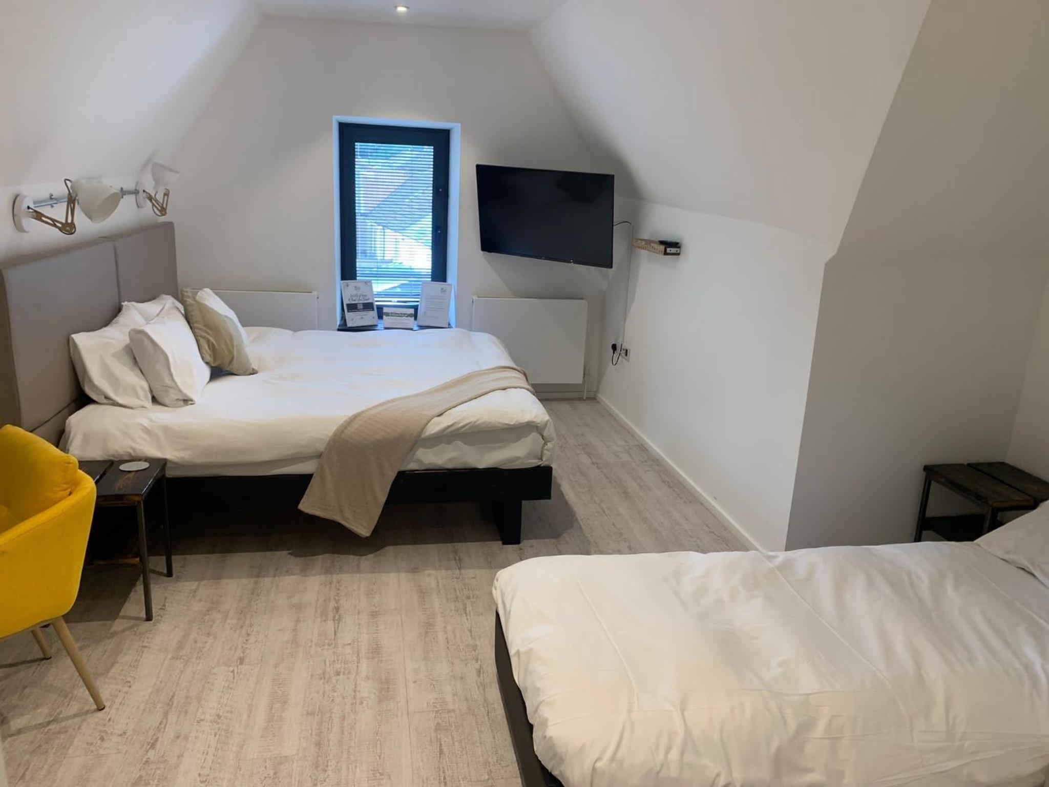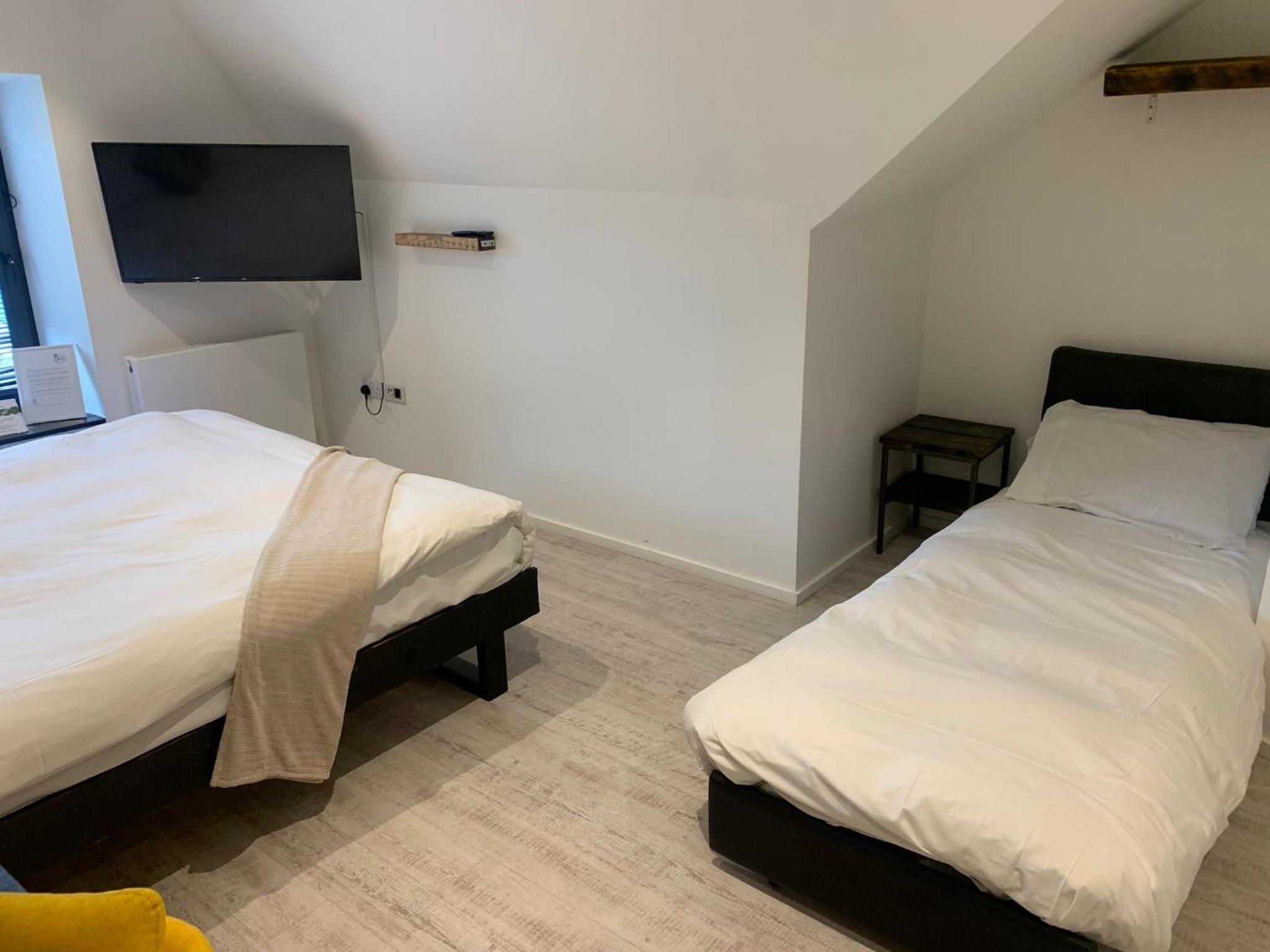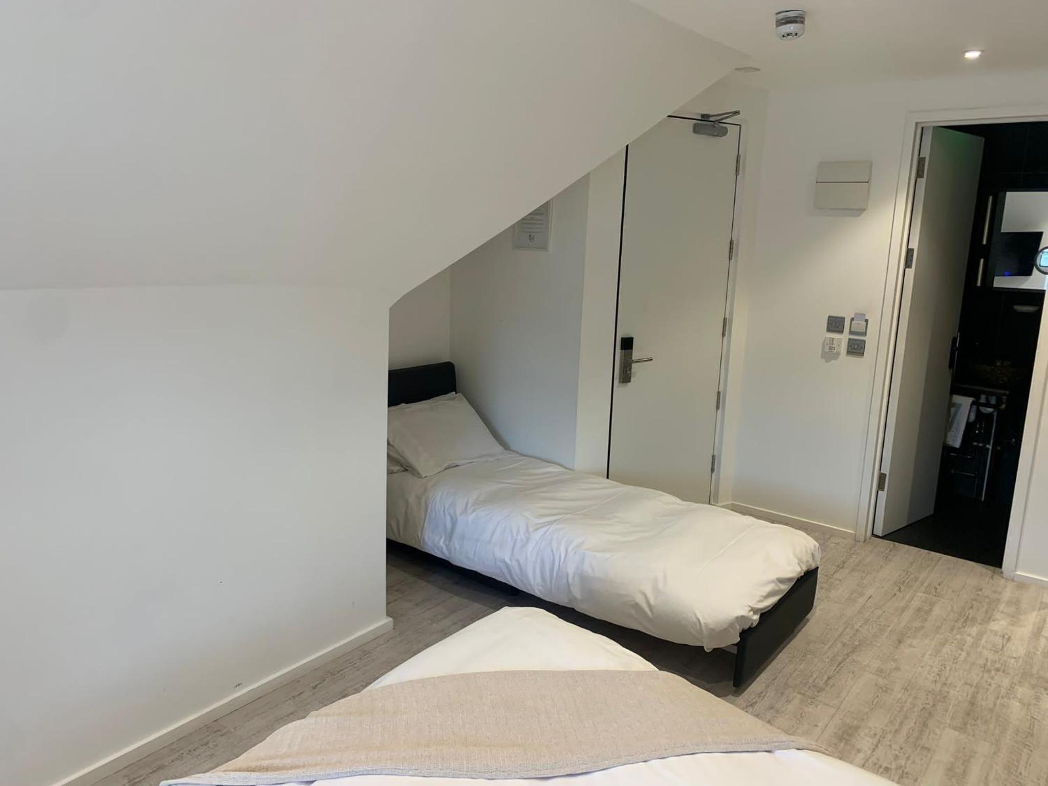 Lovely room, spacious and modern with a very nice bathroom and shower. Tea, coffee, bottles of water and cake left for us in the room. When we checked in we were given a £5 Greggs voucher each which was a nice touch. Good location.
