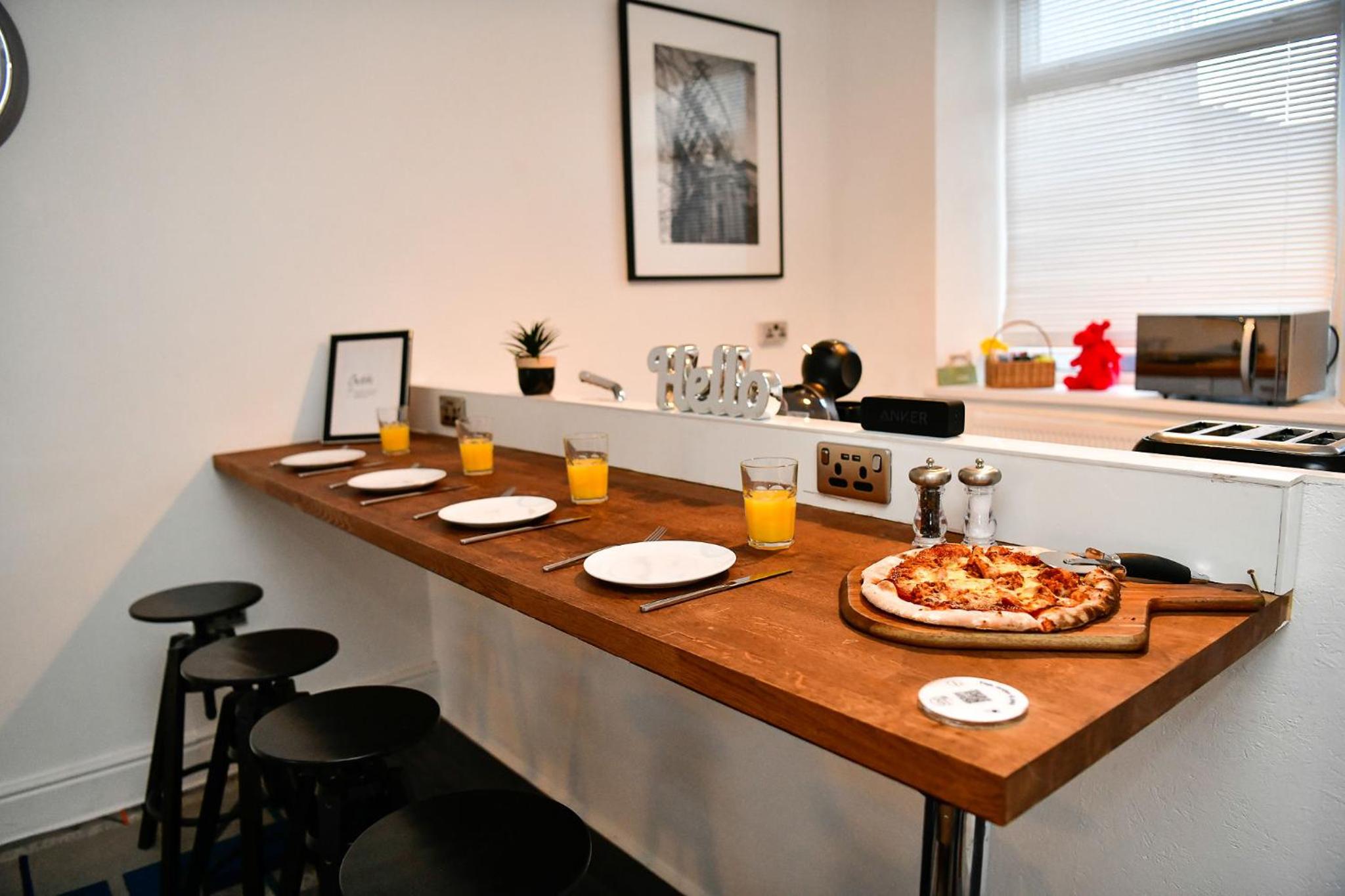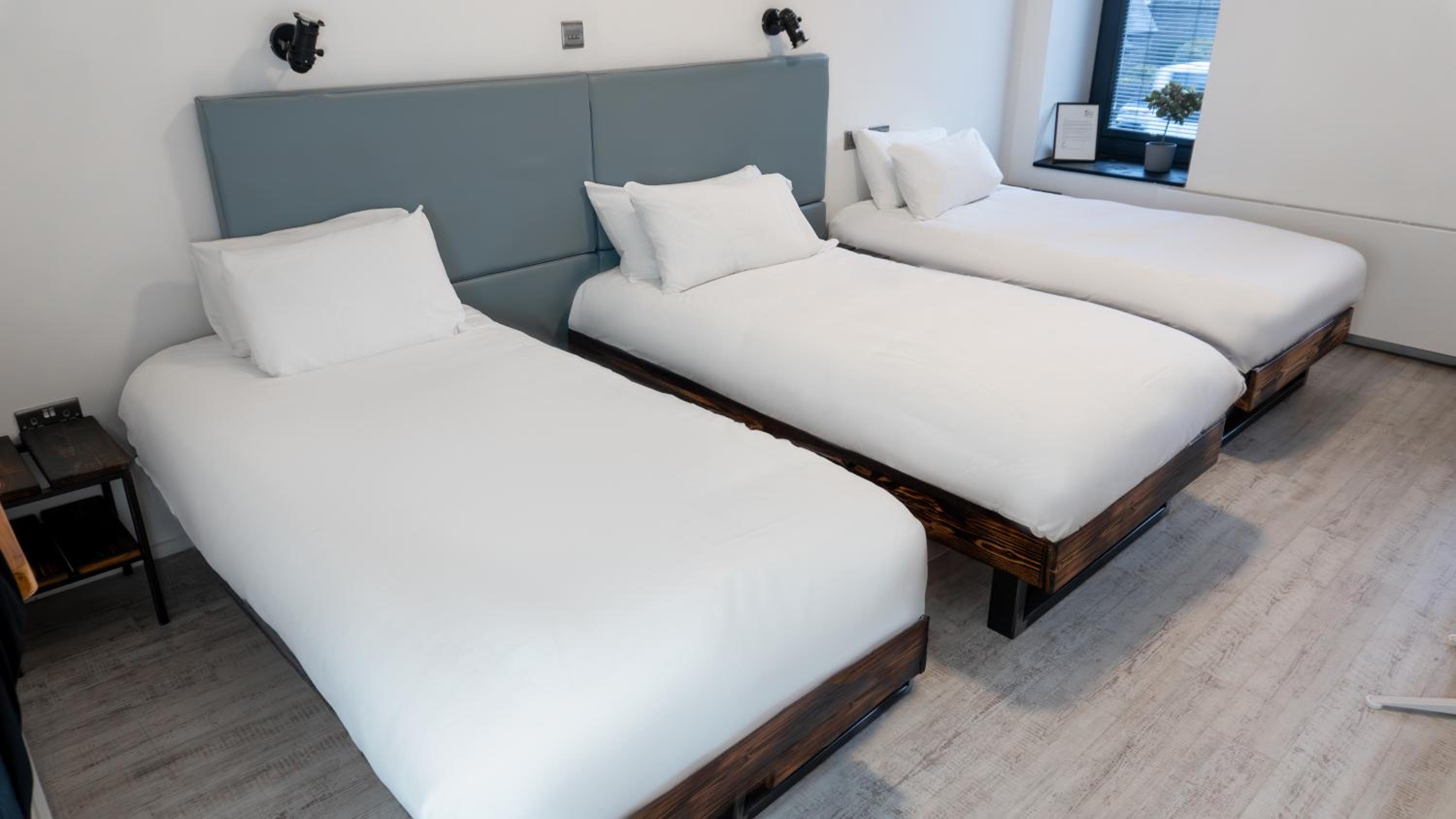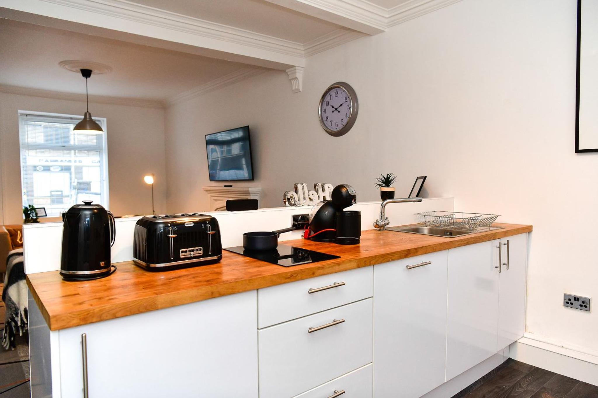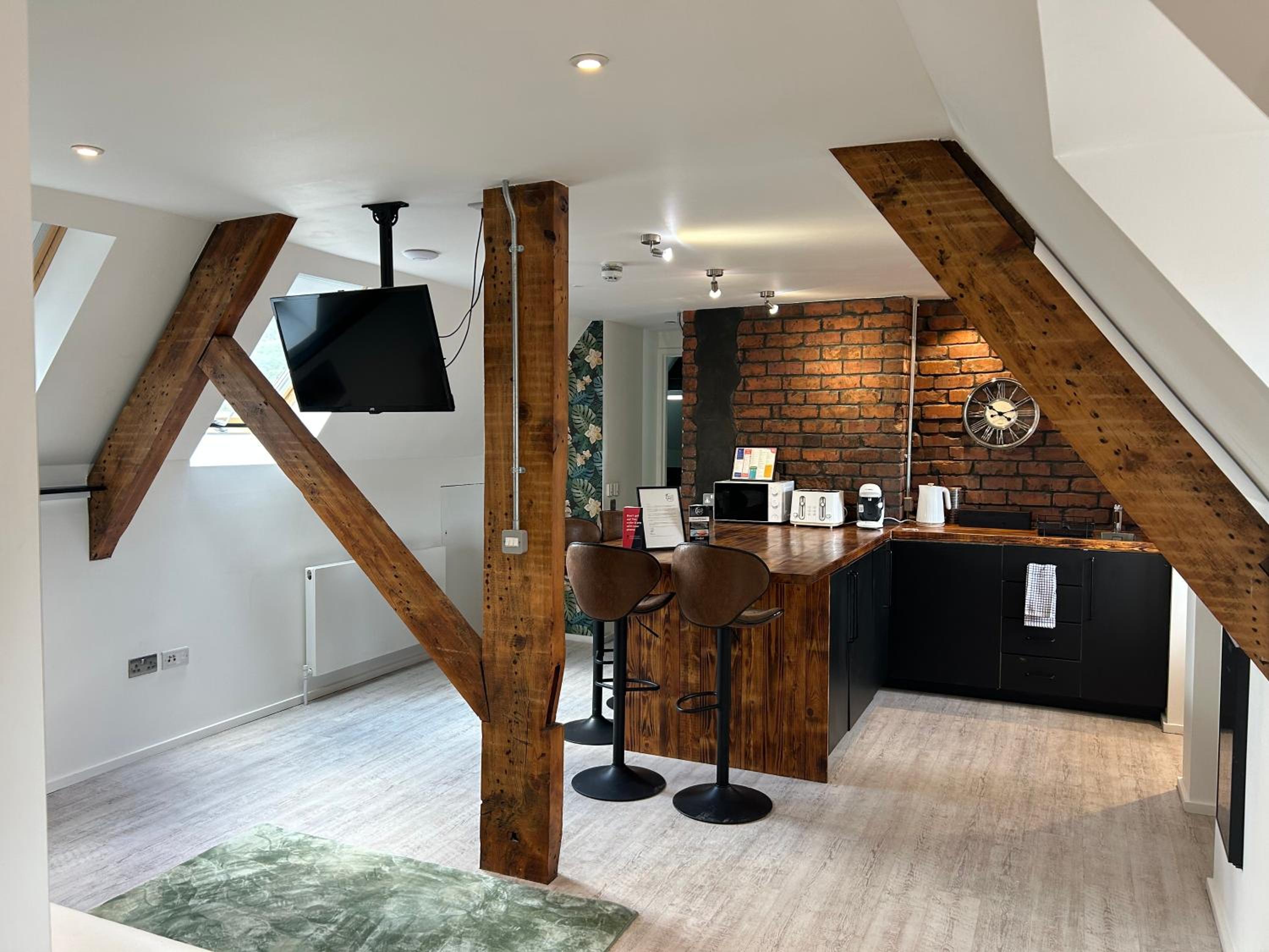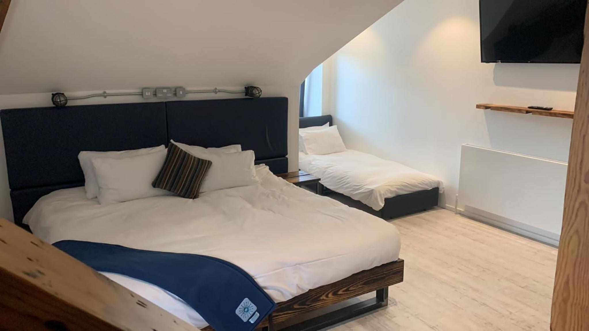 Lovely room, spacious and modern with a very nice bathroom and shower. Tea, coffee, bottles of water and cake left for us in the room. When we checked in we were given a £5 Greggs voucher each which was a nice touch. Good location.
