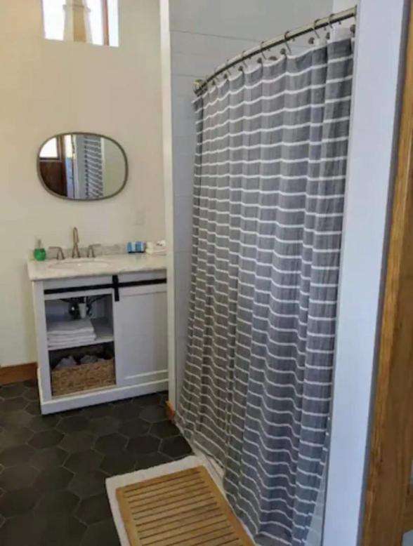 The bathroom couls use a real door.