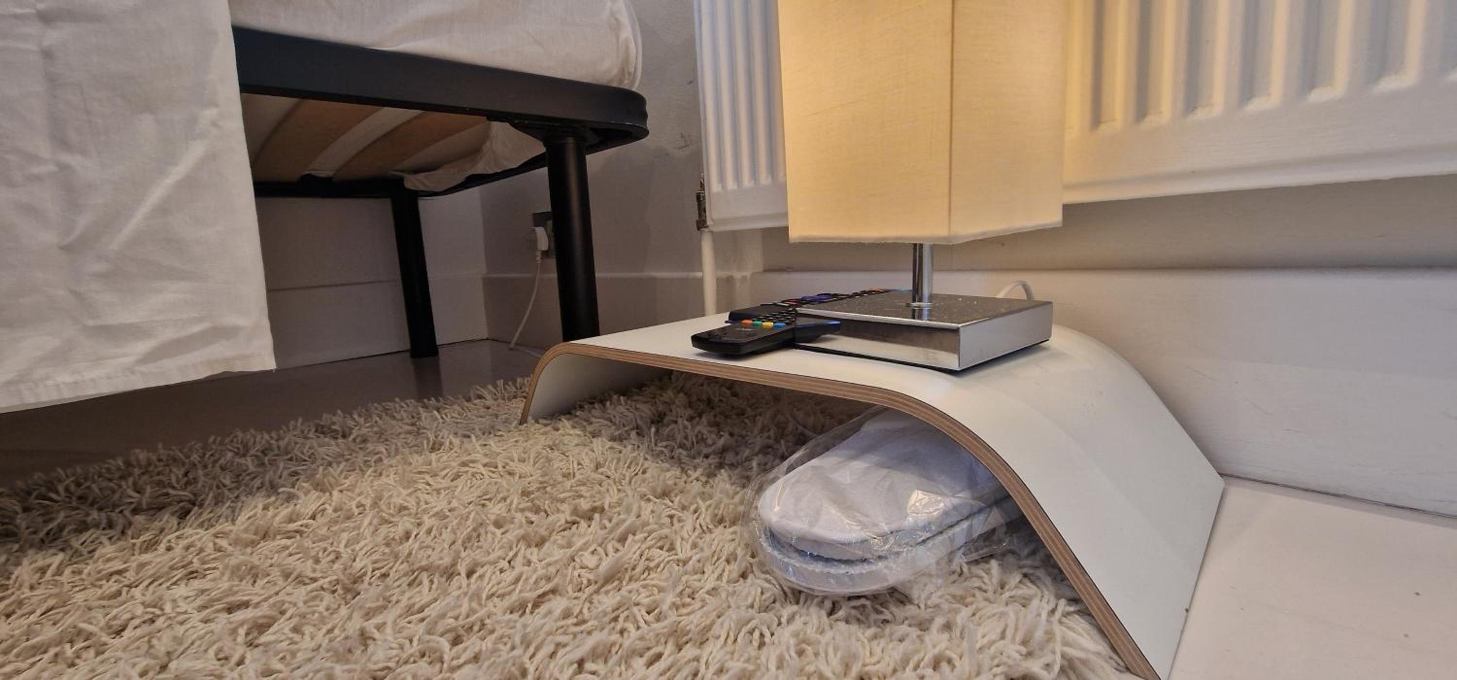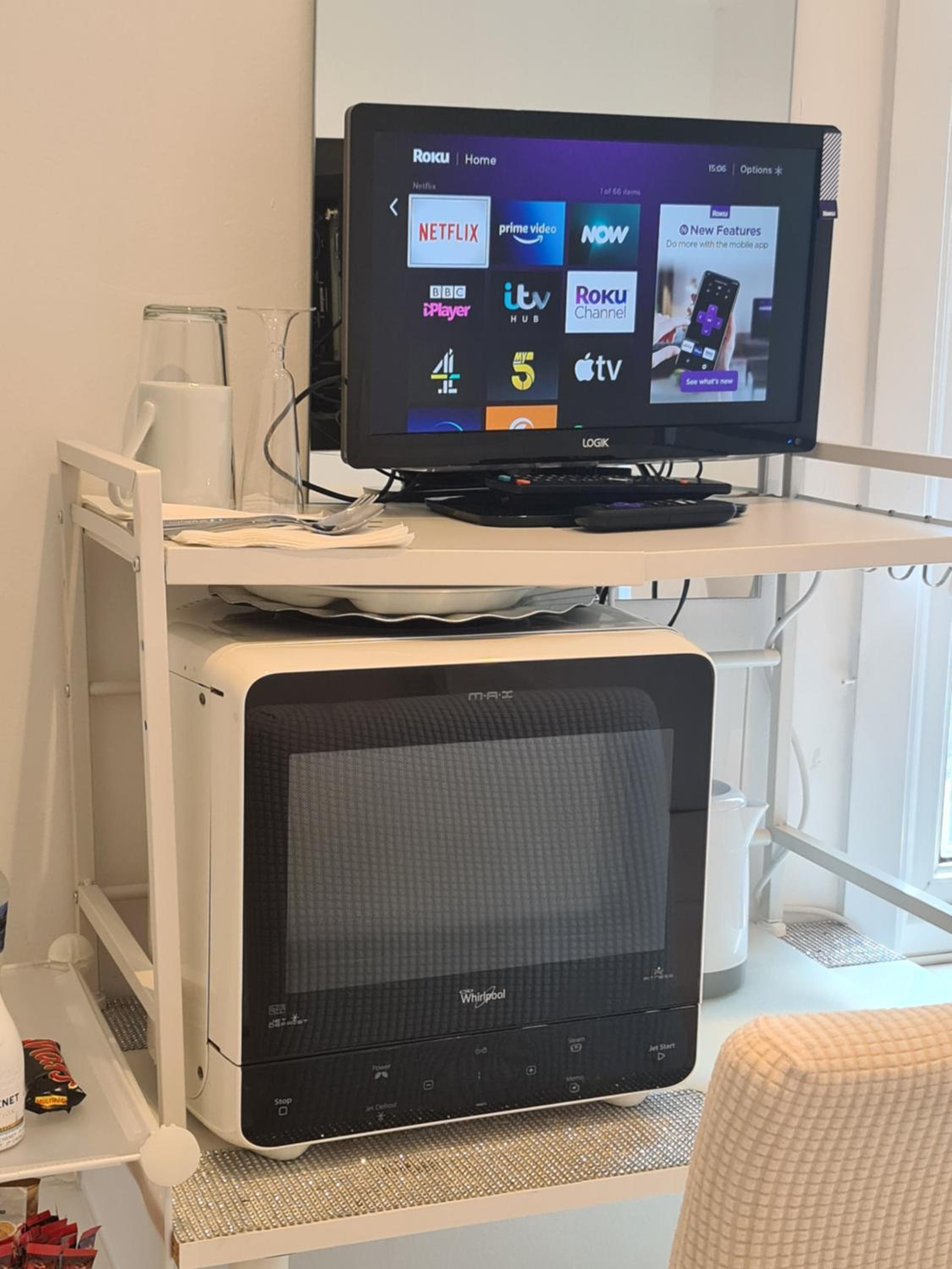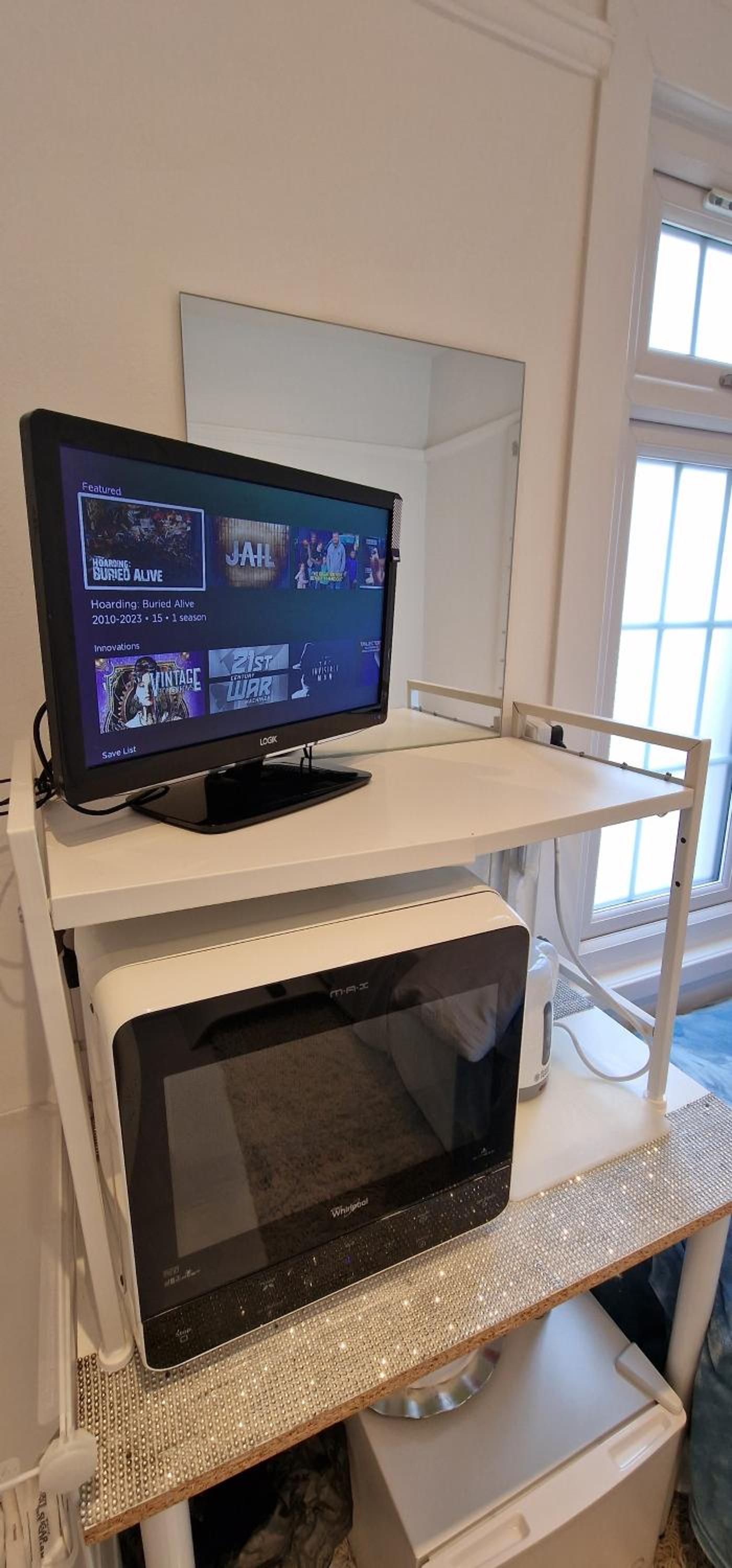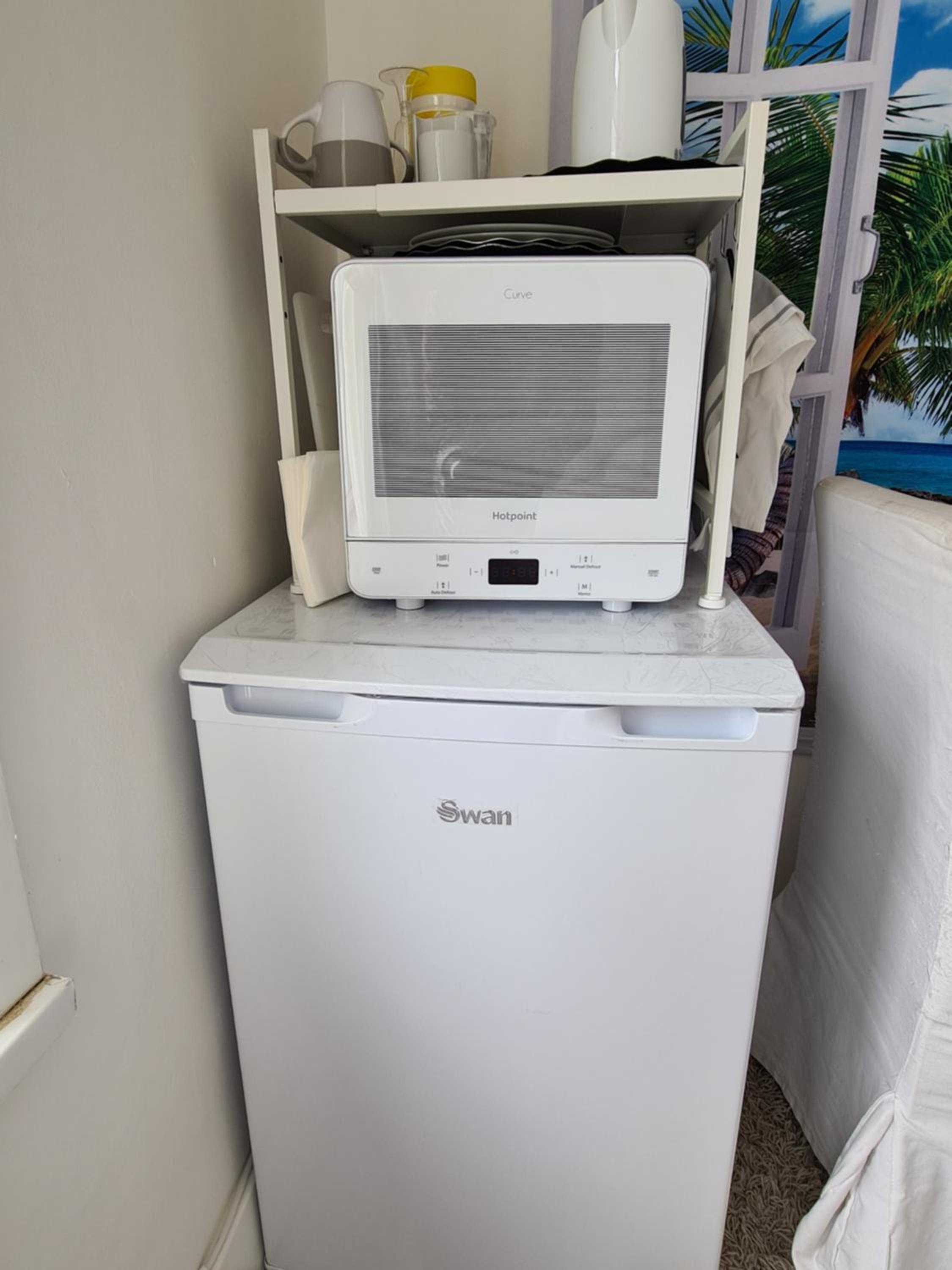 A smoke alarm on the landing beeped the whole time, so, in need of batteries it would not have alerted in the event of fire.....therefore a serious health risk. Appliances packed tightly in the room (kettle, microwave AND TV) were all plugged into one extension lead then into a single socket. None had been PAT tested.