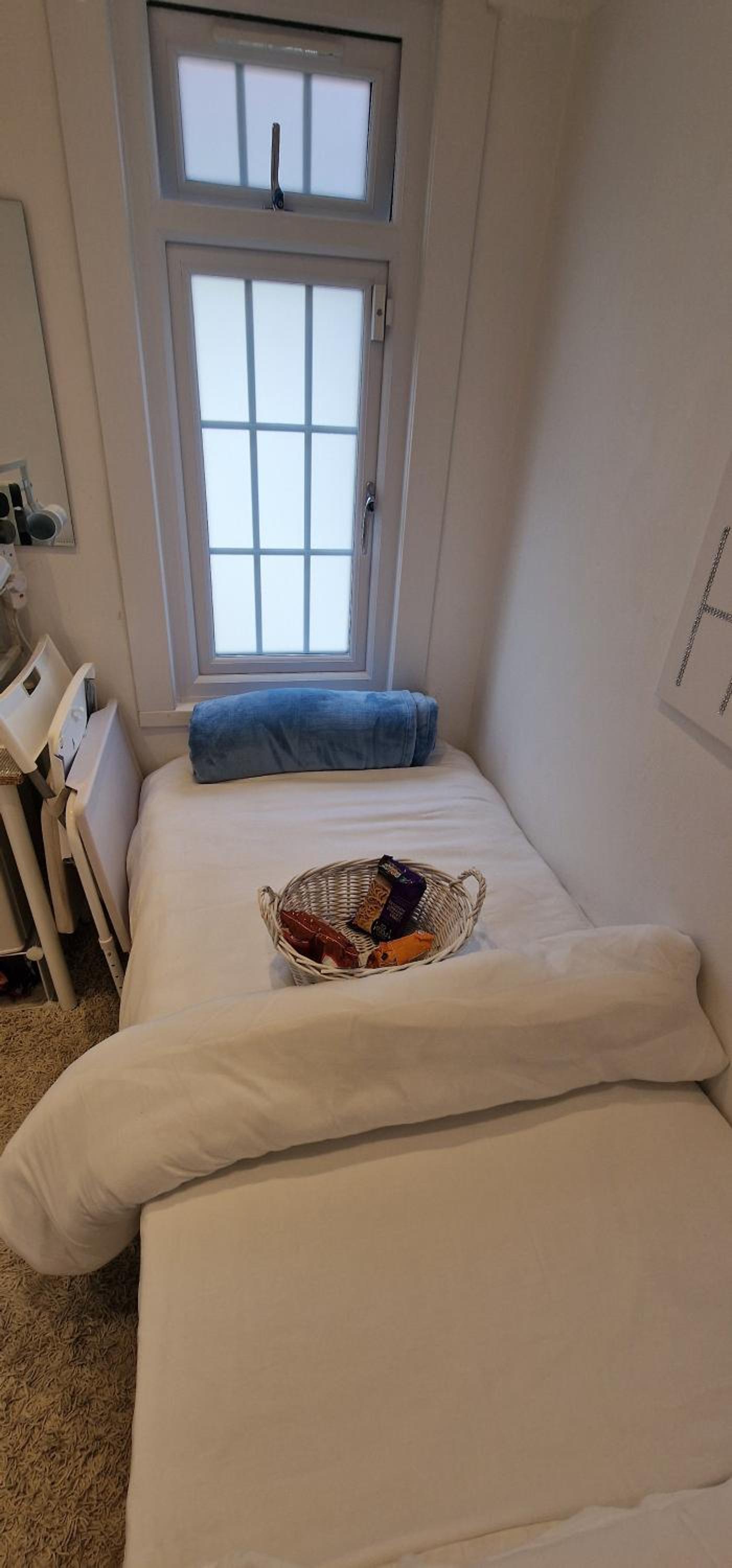 The room was tiny, airless, hot and stuffy with an uncomfortable single bed that took up the majority of the space. I could almost touch all of the walls when standing in the centre of the room. .