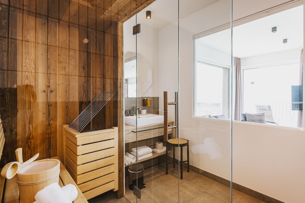 Die Sauna im Zimmer ist toll, sehr angenehm ohne andere und man kann danach einfach im Bett ruhen. Allerdings kann man nicht wirklich in der Sauna liegen, dafür ist sie zu klein.