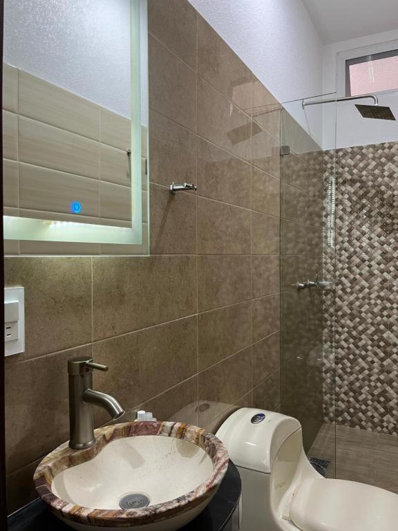 El cuarto y el baño muy pequeñitos pero completo con todos sus servicios