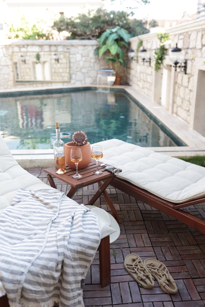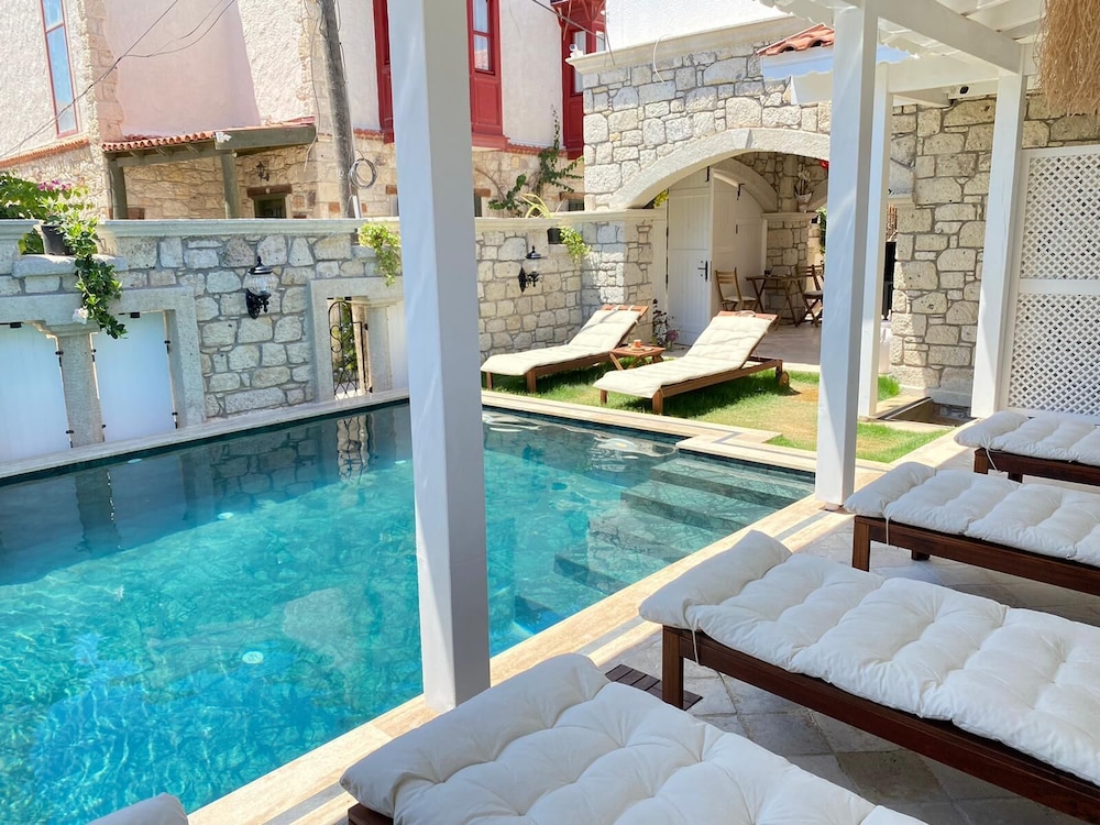 Odalarin dekorasyonu çok güzel, banyosu tertemiz ve yeni dekore edilmiş. Havuz’u ve havuz kenarı çok tatlı ve yine çok modern. Otel konum olarak çarşıya çok yakın ve ara sokakta olduğu için çarşıya yakınlığına rağmen ses gelmiyor. Otelin çalışanları gece saat kaç olursa olsun sizi gördükleri her an memnuniyetinizi soruyor ve bir isteğiniz olup olmadığını. Alaçatı içinde kaldığım en misafirperver, temiz ve havuzu en güzel otel olabilir.