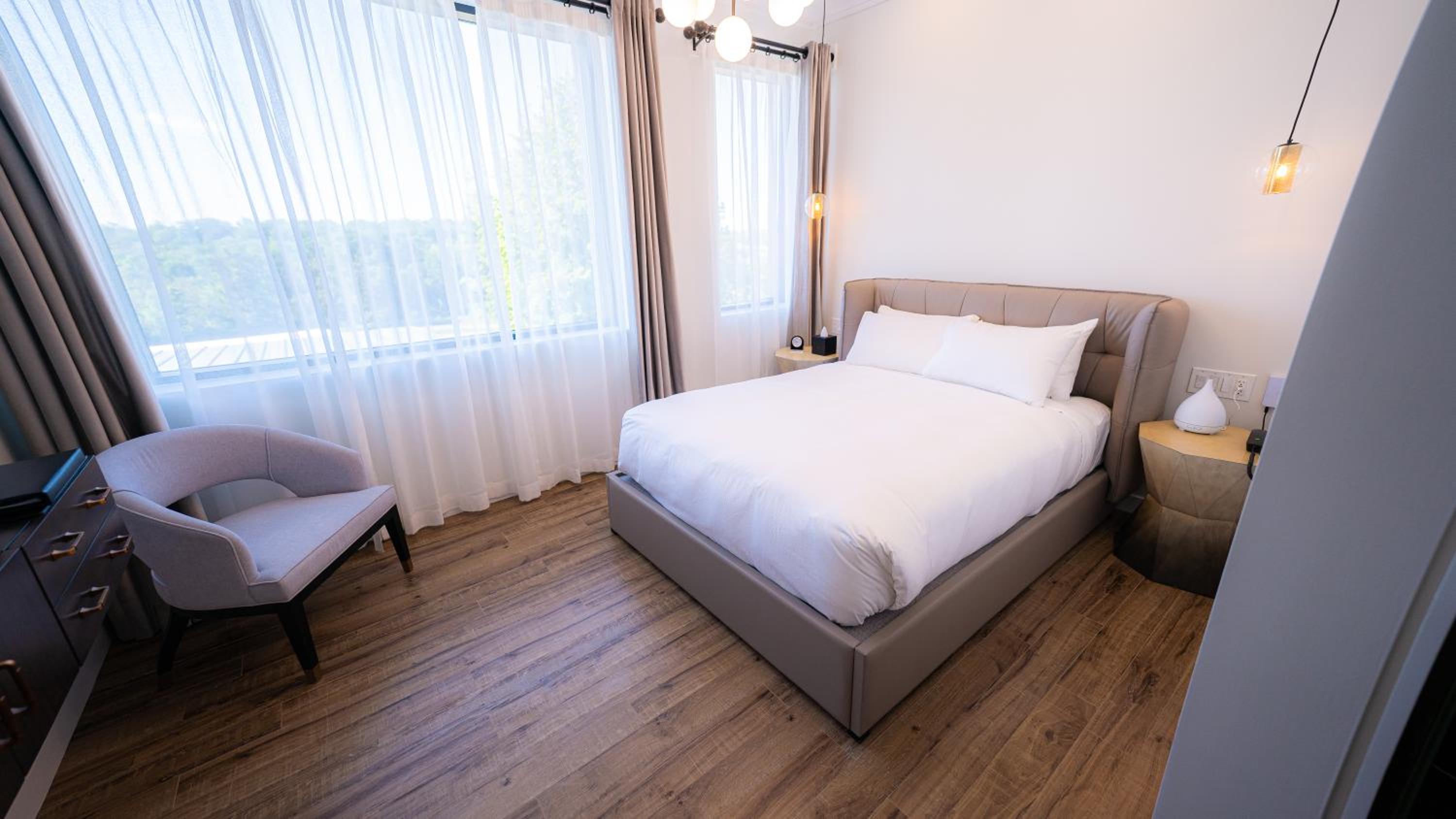 If you have accessibility requirements, this place is not for you. None of the automatic door openers actually work. Our two-bedroom suite didn’t have a lounge or sofa, just a table and four chairs. No working tv except for a shared Netflix account. Toiletries were a random mix from a local drugstore, it seems. And there was no staff around during the 11am checkout. This is a motel disguised as a hotel disguised as a luxury resort. If you’re marketing yourself as upscale, and charging upscale prices in Orangeville, then I’d expect much better.