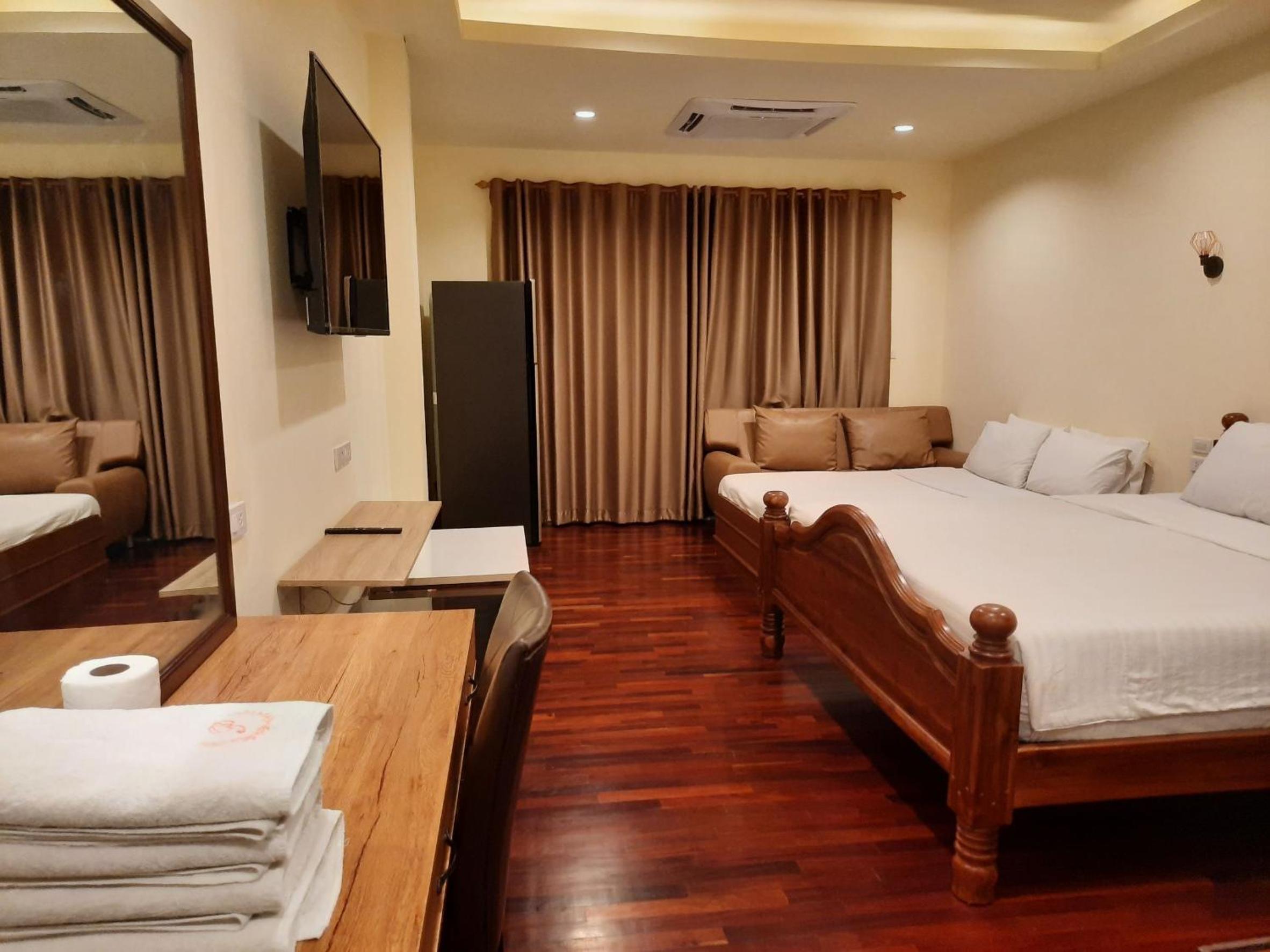 Hôtel confortable. Literie excellente. Nous voyageons en famille avec 2 enfants. Nous avions une chambre quadruple qui était en fait super avec 2 chambres doubles chacune avec sa SDB et reliees par un salon cuisine commun. Ménage fait tous les jours.