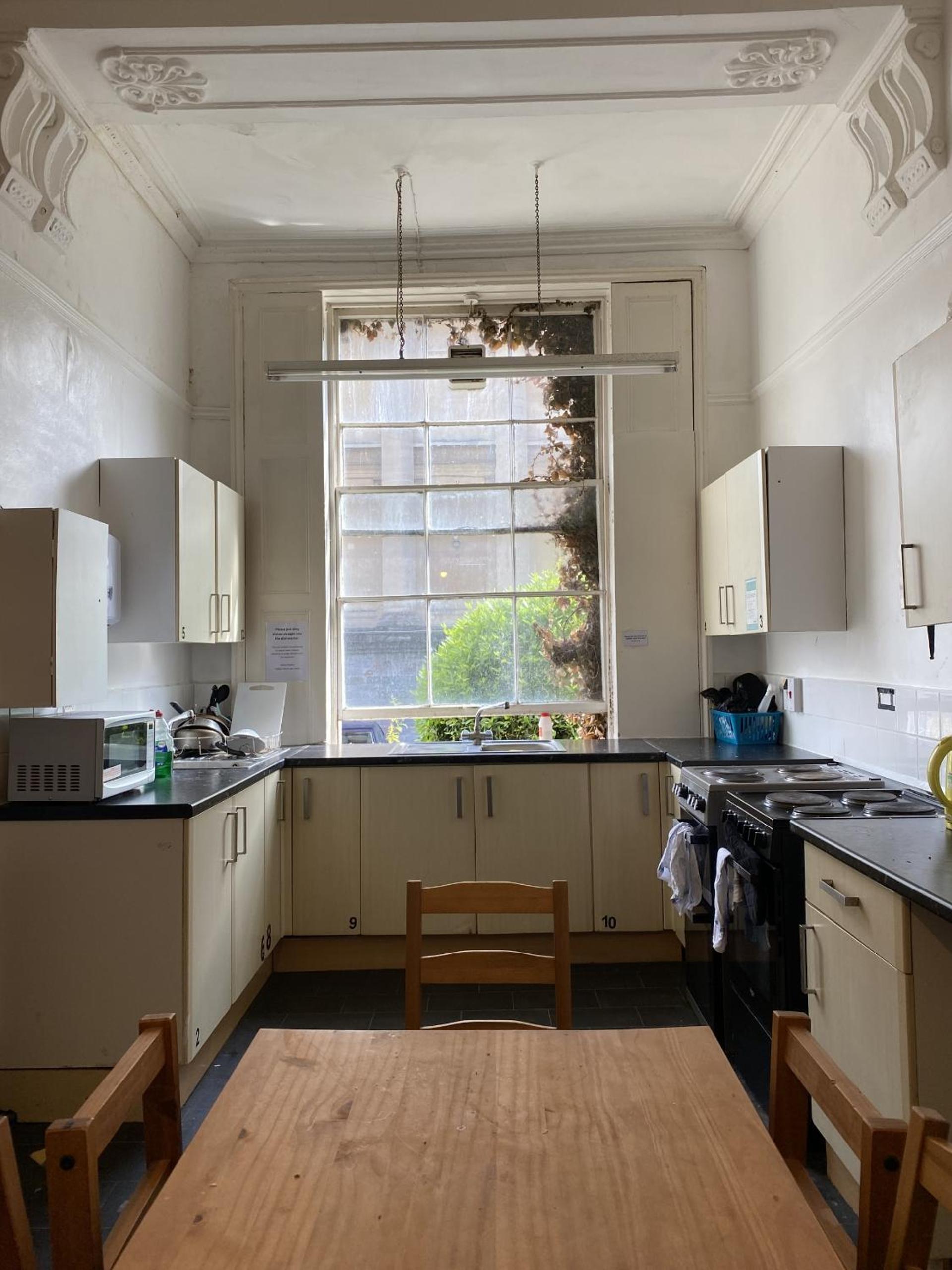 Studio in Room 3. Fantastic location between Clifton and centre and amazing value for money. A short walk from Clifton village and convenient cheap bus routes for going up-and-down Park Street to the centre if needed. Uber readily available 24/7. Parking in West End multi-storey convenient nearby but expensive. Very comfortable bed , and great kitchenette with refrigerator, kettle, microwave and stove. We didn't use the last two but you could be completely self catering if you wish, with a small table and two chairs by the window. Nice bathroom just a few steps away from the door. Quiet in the house. Planning to stay there again for a week next month.