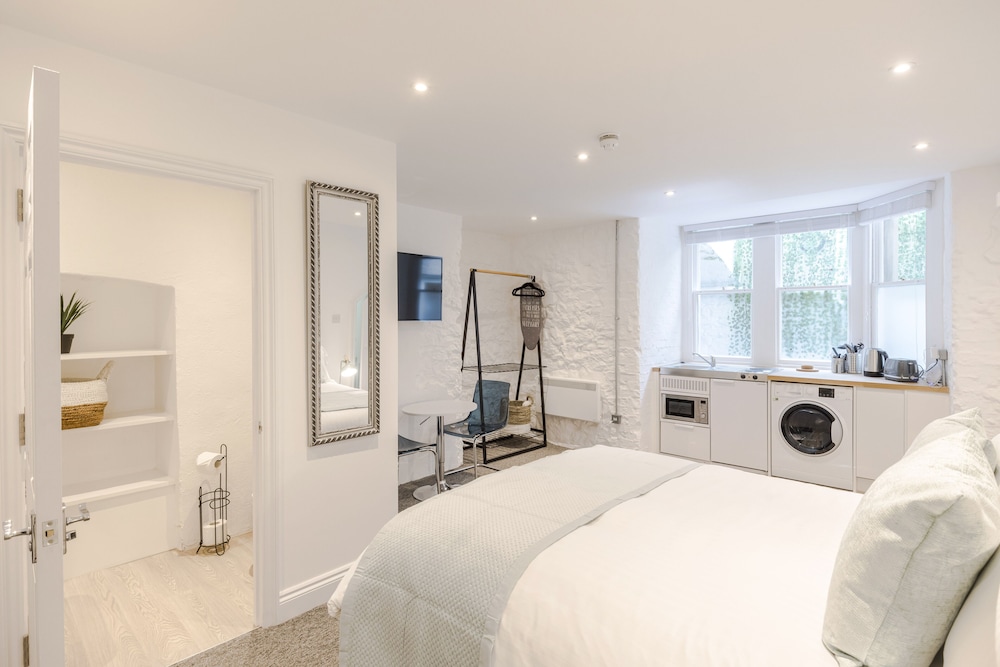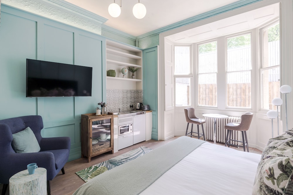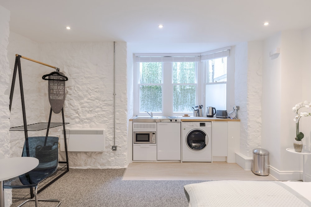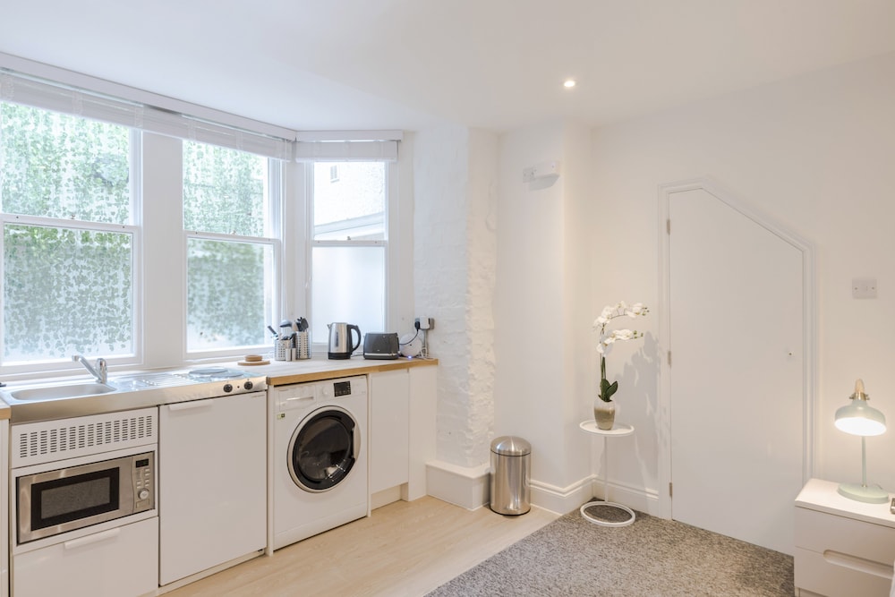 Excellent location for Bristol centre and harbourside. Lots of boutique little shops/coffee bars/restaurants nearby. Great communication by premises regarding parking etc the apartment was super clean. Microwave, kettle, in the little kitchenette zone and quite a spacious sleeping/living room. All was great. One thing of concern was the electric shower which went from cold to extremely hot and then cold again quite quickly. I wouldn’t want to leave a child or vulnerable adult in it as it could really scald someone. The drain smelled quite badly too. But apart from those issues it was a great place to stay.