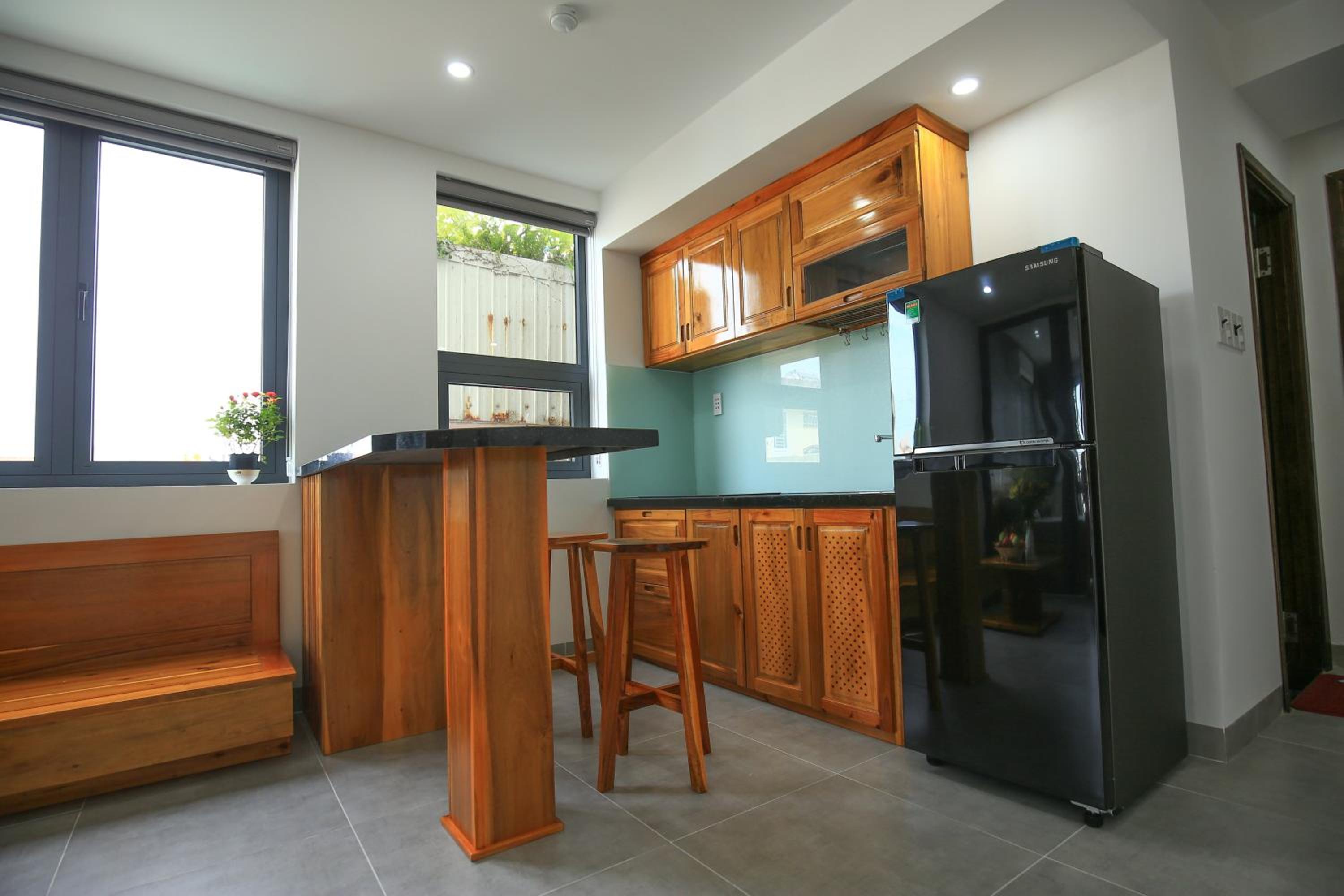 You will feel like at home here , zero noise in the room , u have a full furnished chitcken , washing machine in the room and the lady that manage everything so sweet..... Best place so far in Vietnam enjoy !