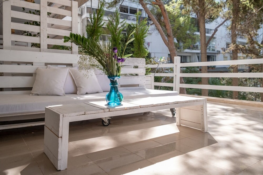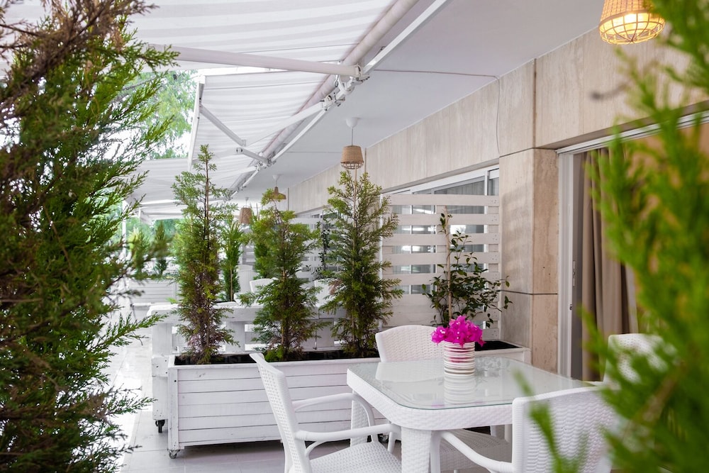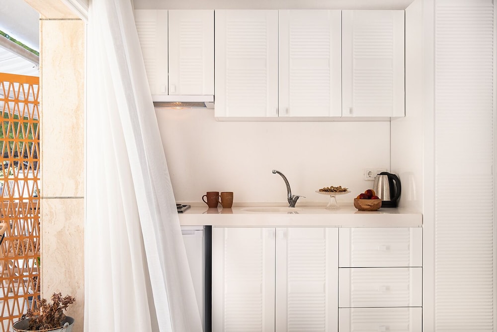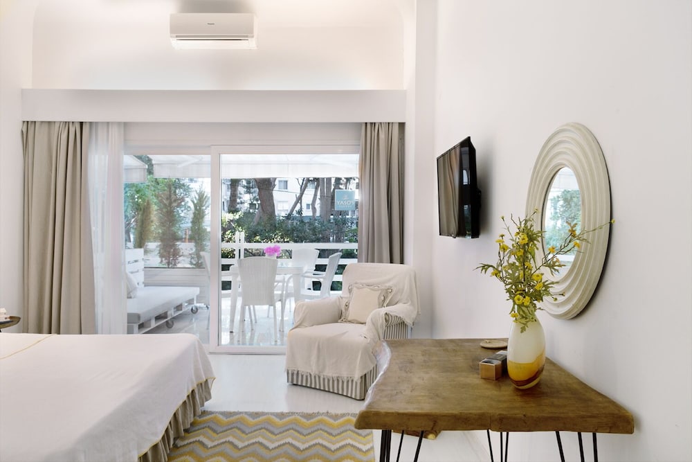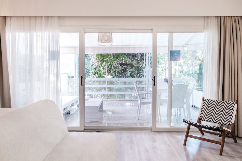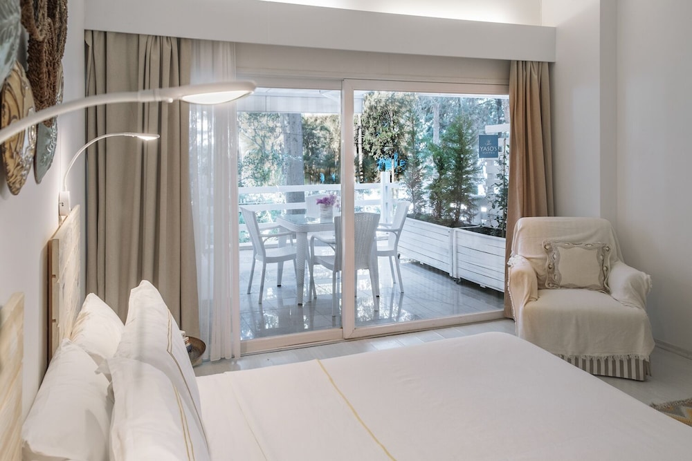 Indulge in stunning views from the terrace and garden at Yaso's Suites. Enjoy a tranquil atmosphere at this charming beach hotel.