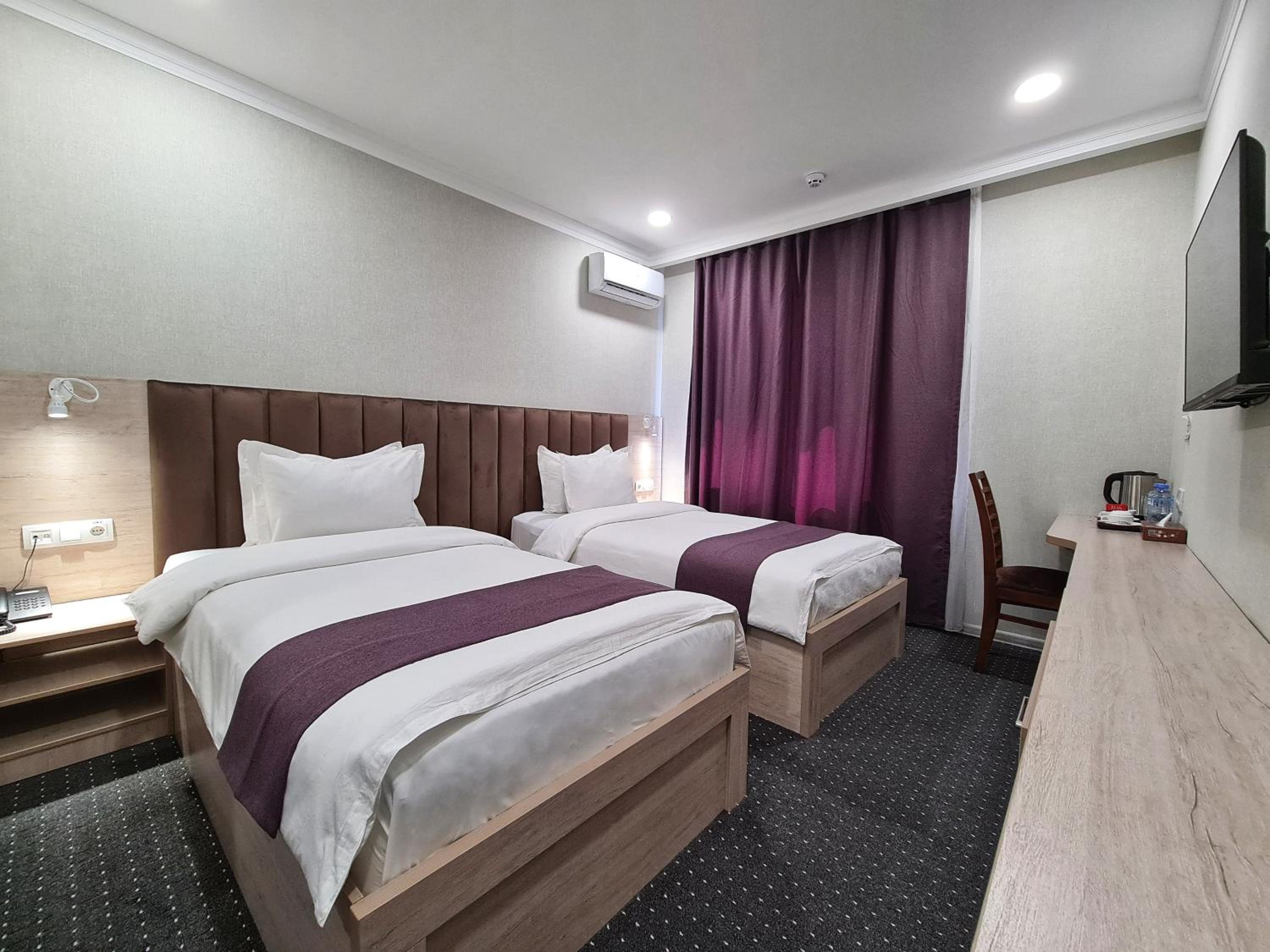 Discover comfort and style at Sharaf Hotel in Tashkent. Our spacious guest rooms are designed with your relaxation in mind, featuring modern amenities such as air conditioning, flat-screen TVs, and cozy bedding to ensure a restful stay.
