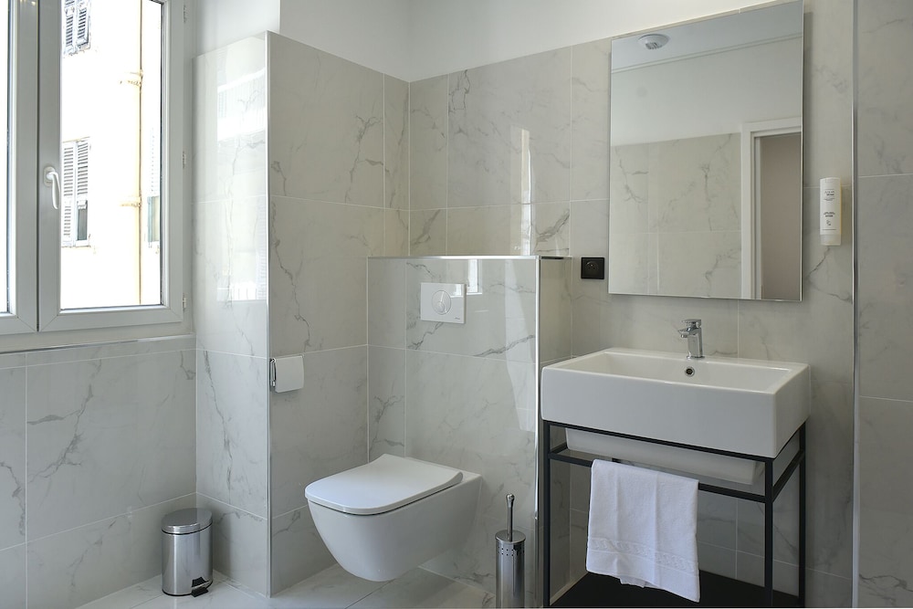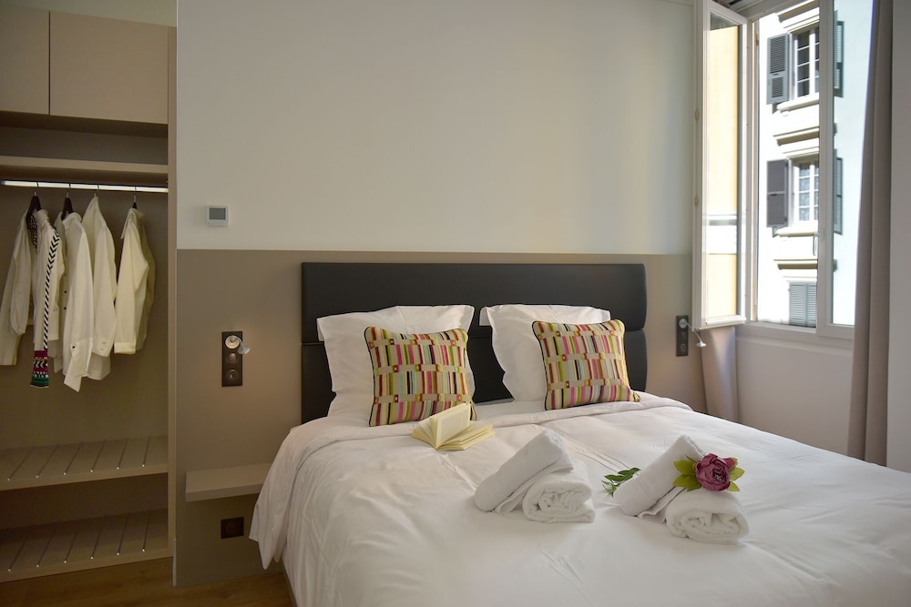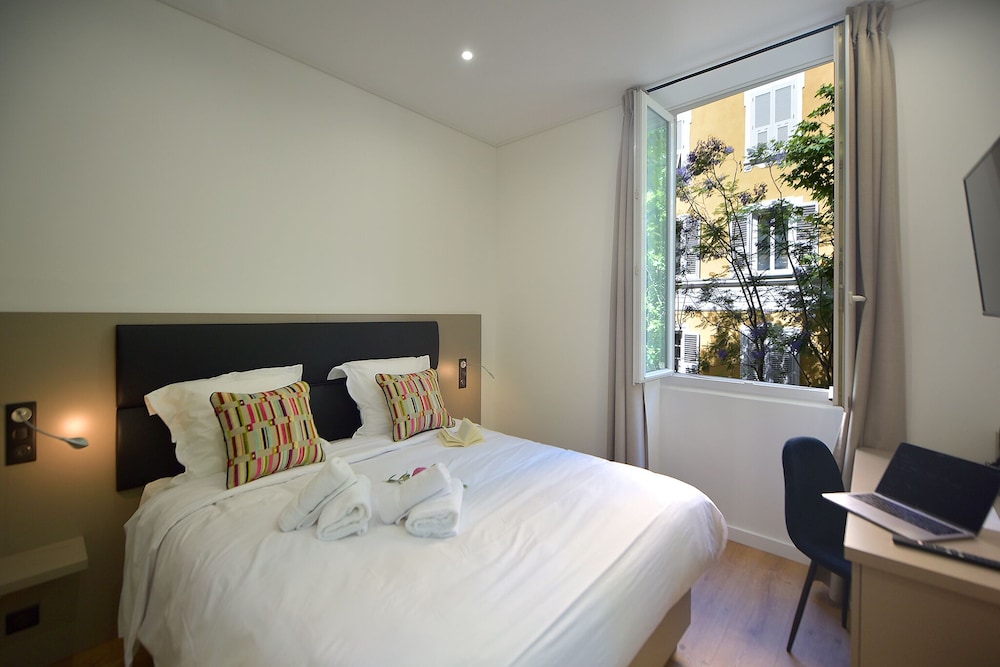 Rooms are spacious and beautiful and the bed fantasic! The hotel staff are all very friendly and professional. The hotel is located in the lovely centre of Bastia.