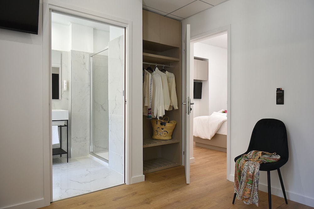 5 minutes from the train station, same to the airport bus next to the train station, same to the port area for catching the numerous ferries a day to France, Italy and Sardinia, in the middle of the shopping district and 50 restaurants within 10 minutes walk. Even a Paul's within 3 minutes and a number of Spar supermarkets within 5 minutes.
