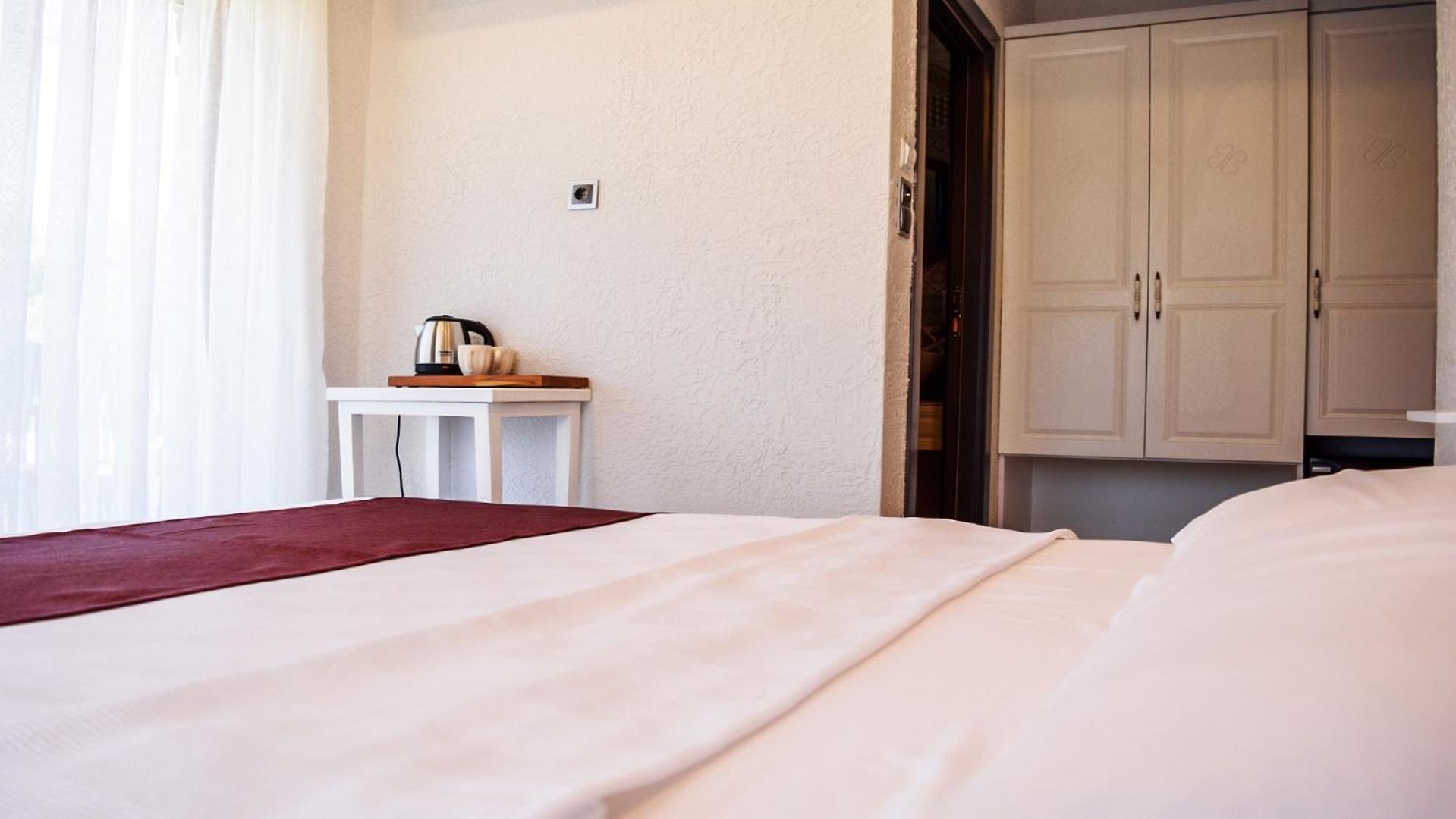 Otele girer girmez sabun kokuları eşliğinde karşılanıyorsunuz.Girişte rasim bey ve eşi sıcak bir karşılama ile karşıladı.Odamız tertemizdi.Sabahları dışarda yiyebileceğinizden daha kezzetli ve çeşitli kahvaltısı vardı.Otelin konumu merkeze yakın mesafede araba ile 4 dk da ulaşabilirsiniz.Sessiz ve dingin biryerdi.Tekrar gelirsem burası dışında başka biryerde kalmayı düşünmem.Herşey için teşekkür ederiz.