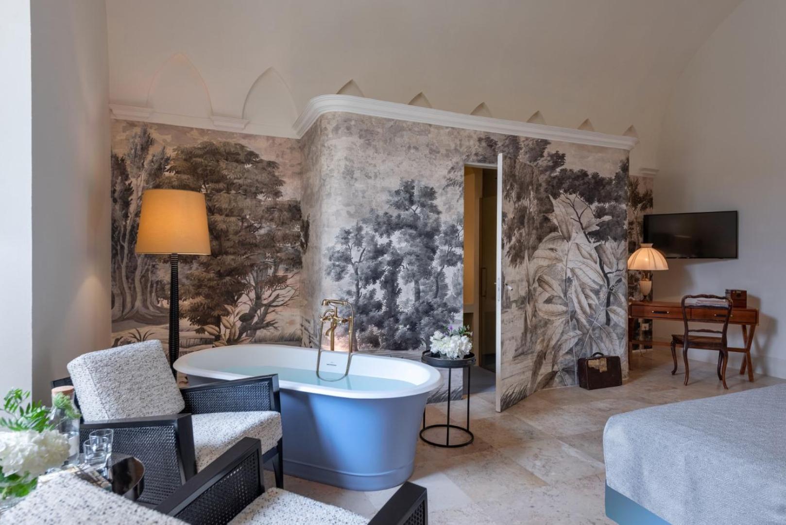 Palazzo Donna Elisabetta, a 5-star hotel in Manduria, offers a luxurious stay with an outdoor swimming pool, sun terrace, and hot tub. Each room features a flat-screen TV, air conditioning, and a private bathroom, with some rooms boasting a balcony for stunning views.
