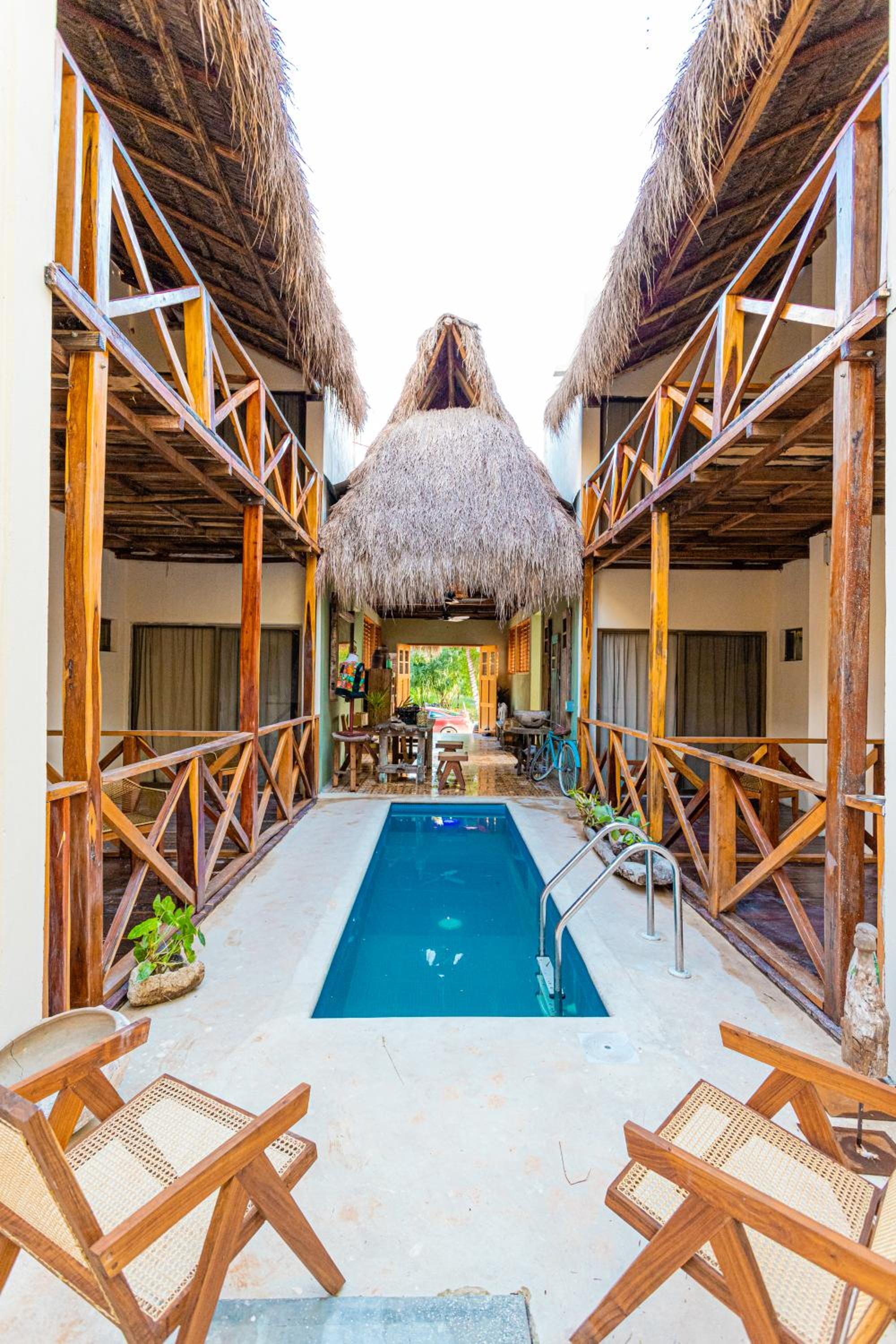 Está muy lejos del centro de Bacalar. A pie son 40 minutos, y los últimos 20 minutos son en camino de tierra sin luz. En taxi el hotel está a unos 7 min del centro, y cuesta unos 100 pesos.