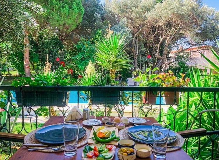 Escape to Urla Bella's lush garden and relax on the terrace, surrounded by tranquility.