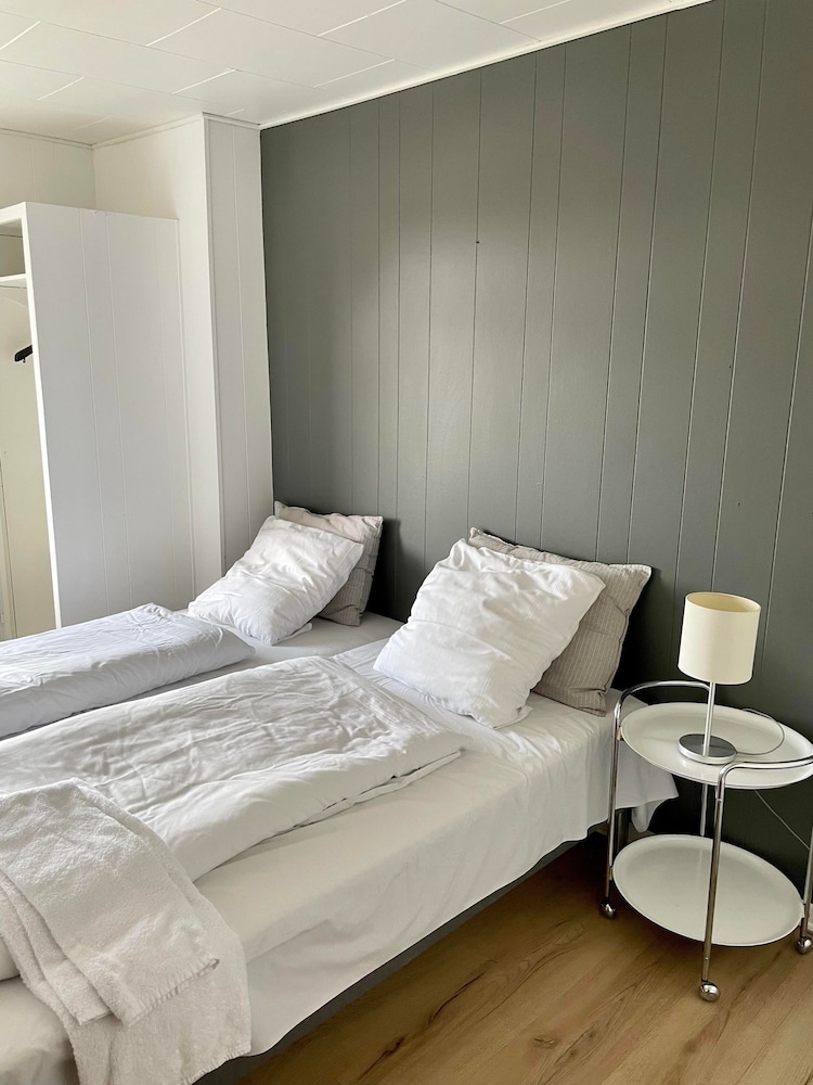 Fint værelse, dog kun med 1 toiletrulle til rådighed. Og når man skriver, at det er inkl morgenmad, og ydre mere på ankomst dagen, får både sms og mail om, at man skal huske, at bestille bord, i deres fantastiske restaurant, hvis man ønsker aftensmad der, samt hvad tid der er morgenmad den efterfølgende dag. Er det skuffende at komme til låste døre, på et sted, der lingner det er forladt. Jeg har forståelse for, hvis stedet kun har sæson åbent, men så skriv det dog, det andet er falsk markedsføring, og havde vi vidst det havde vi nok valgt anderledes.