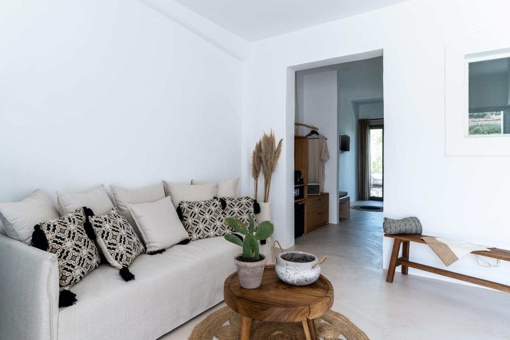 Exquisite Accommodations: Indulge in a stay at PAREA Paros - Adults Only, where each room features a coffee machine, private bathroom, flat-screen TV, and air conditioning. Some rooms even offer a cozy seating area for ultimate relaxation.