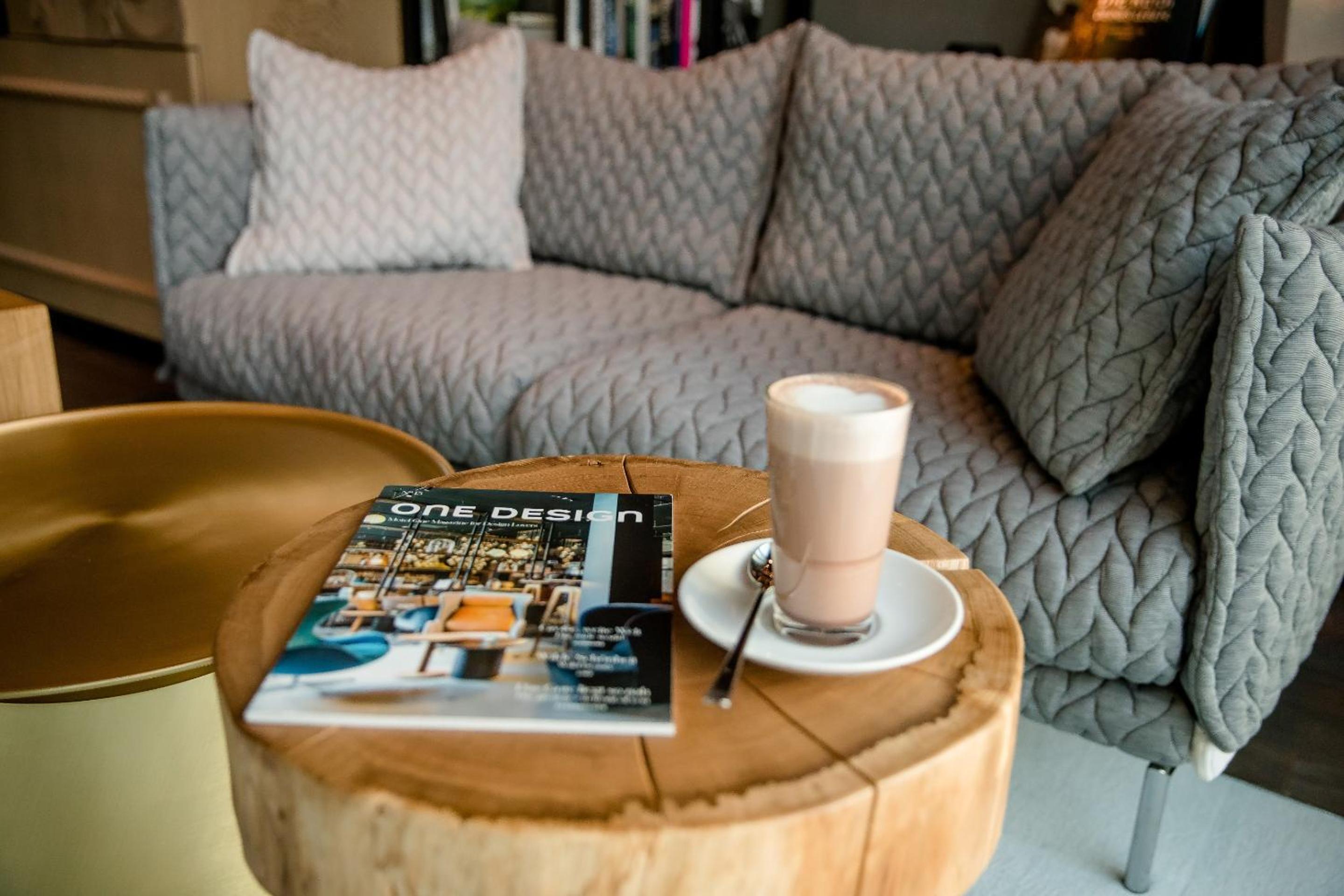 Frühstücken in Couch Sessel mit kleinen Tischen….der Look ist gut aber sehr unbequem 😏