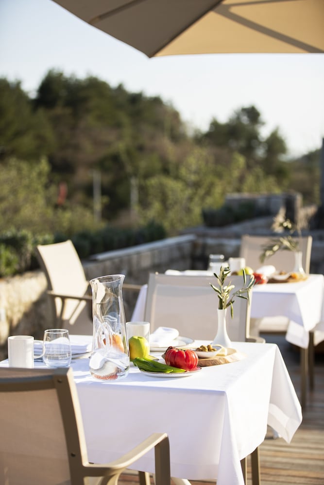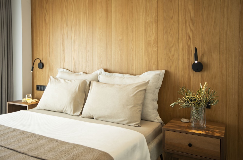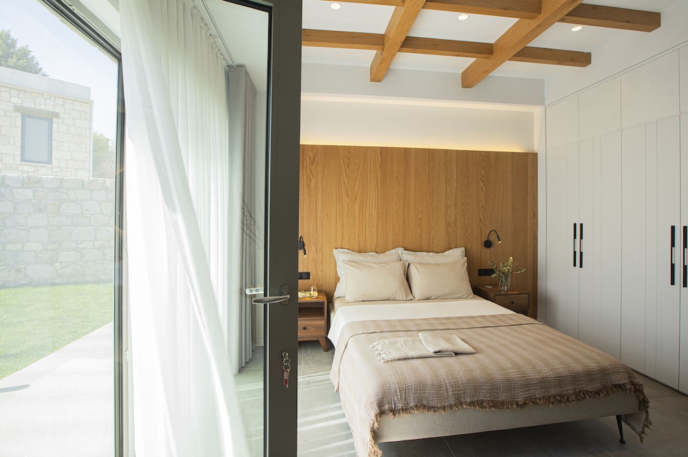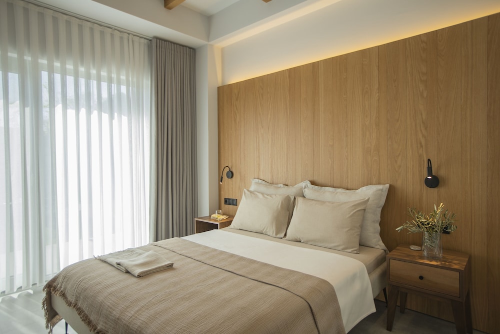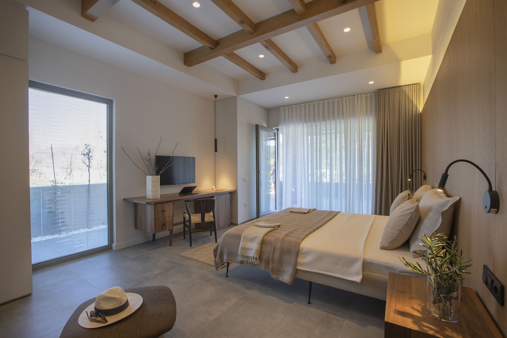Die Zimmer sind ebenfalls großzügig geschnitten mit einem herrlichen Bad und einer windgeschützten Terrasse. Tags und nachts genießt man absolute Ruhe, da das Hotel außerhalb eines kleinen Ortes liegt, es gibt keinerlei Verkehr.