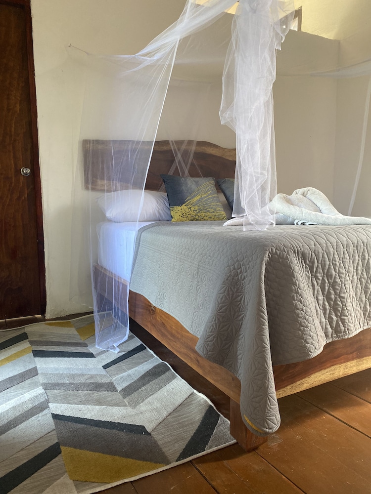 había algo de moscos dado qué hay manglares y el cenote nos ubiera gustado estar por la noche observando el cenote. con iluminación la cual está fundidas las luces y no hay un lugar o espacio para cosinar. pero bueno nos prestaron un sartén y estufa eléctrica y se solucionó no había luz un día por la mañana y la chapa no derraba y no dieron servicio de limpieza. el bote del baño muy pequeño y no había seseo en la recámara