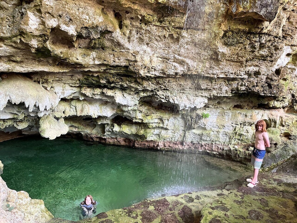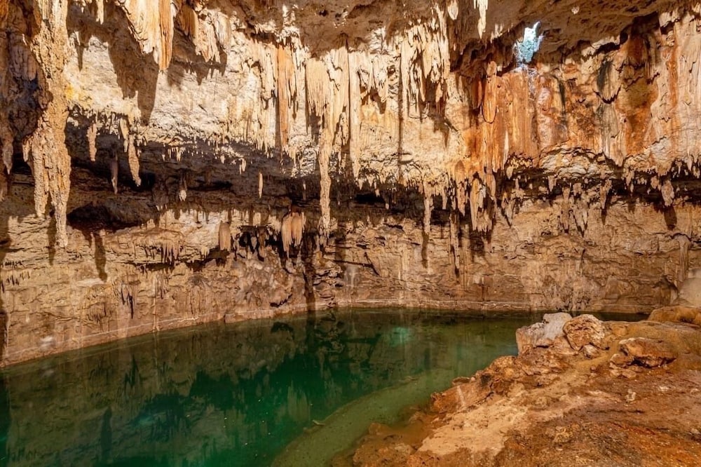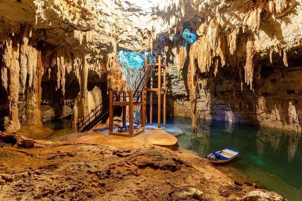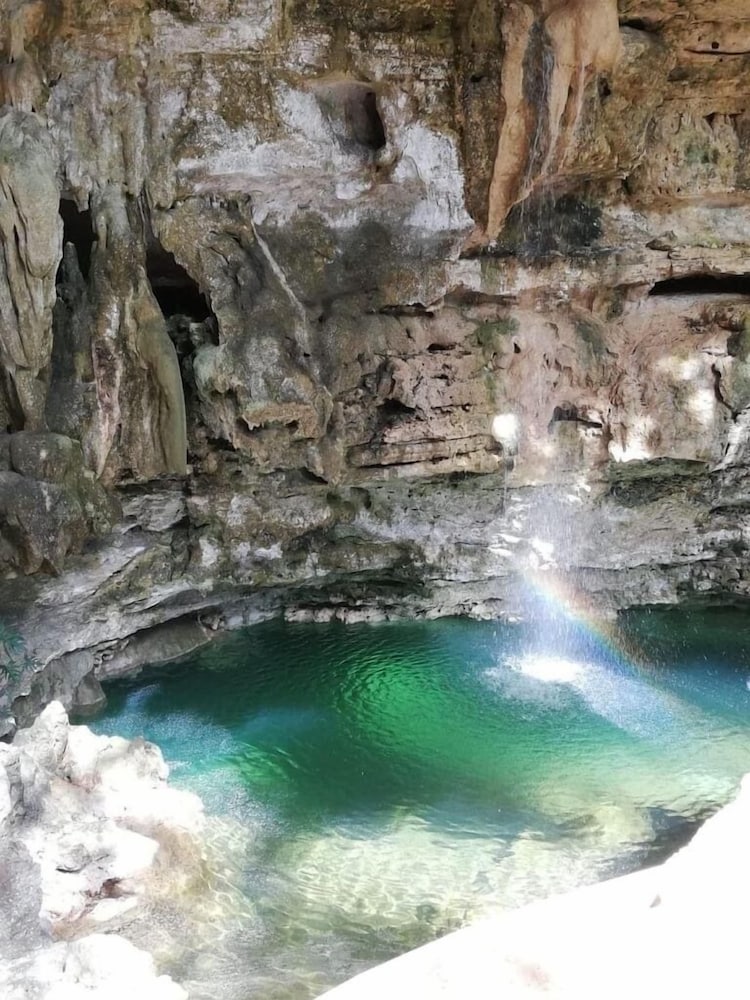 Un lugar muy bonito, a 20 minutos de valladolid. Lo recomiendo ampliamente si buscas un lugar para relajarte y hacer algo diferente. tiene una cueva gigante, fascinante. Increible para las fotos. tambien tiene un cenote donde si te puedes meter al agua, igual increible. Se hacen ceremonias mayas, bodas, etc. A mi me toco solo el hotel y fue una gran experiencia. solo que NO HAY internet en la habitación y el tema de datos en el cel es muy pobre. Asi que literal esta para relajarse.