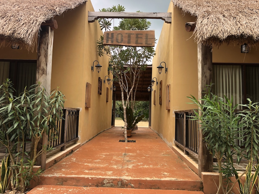 Beautiful grounds of the hotel, very friendly staff. Quiet too. We were the only guests and no people visiting the cenotes. They mention a continental breakfast and that’s served in a minimalistic form: flakes and/or toast with some gelly and a cup of coffee or tea. Everything else is upsell.