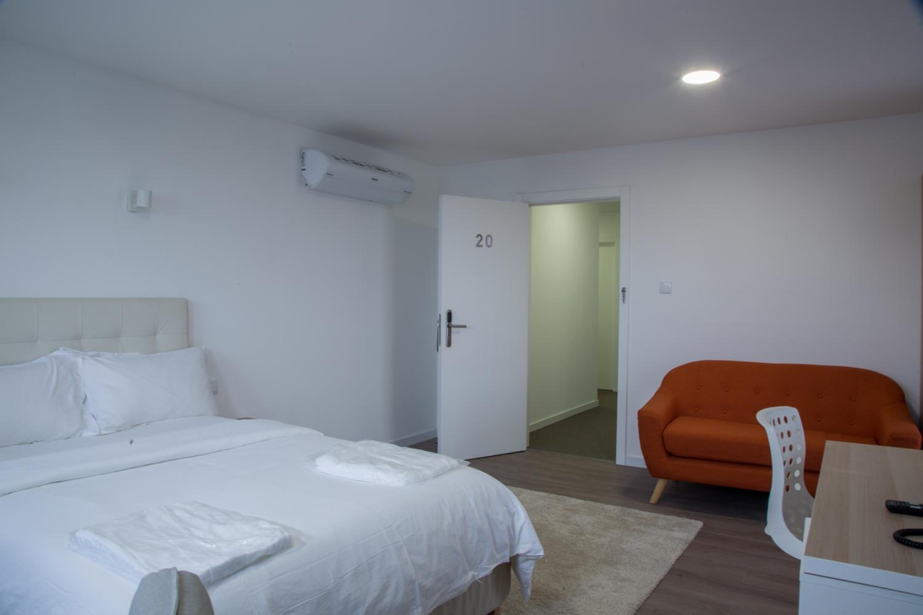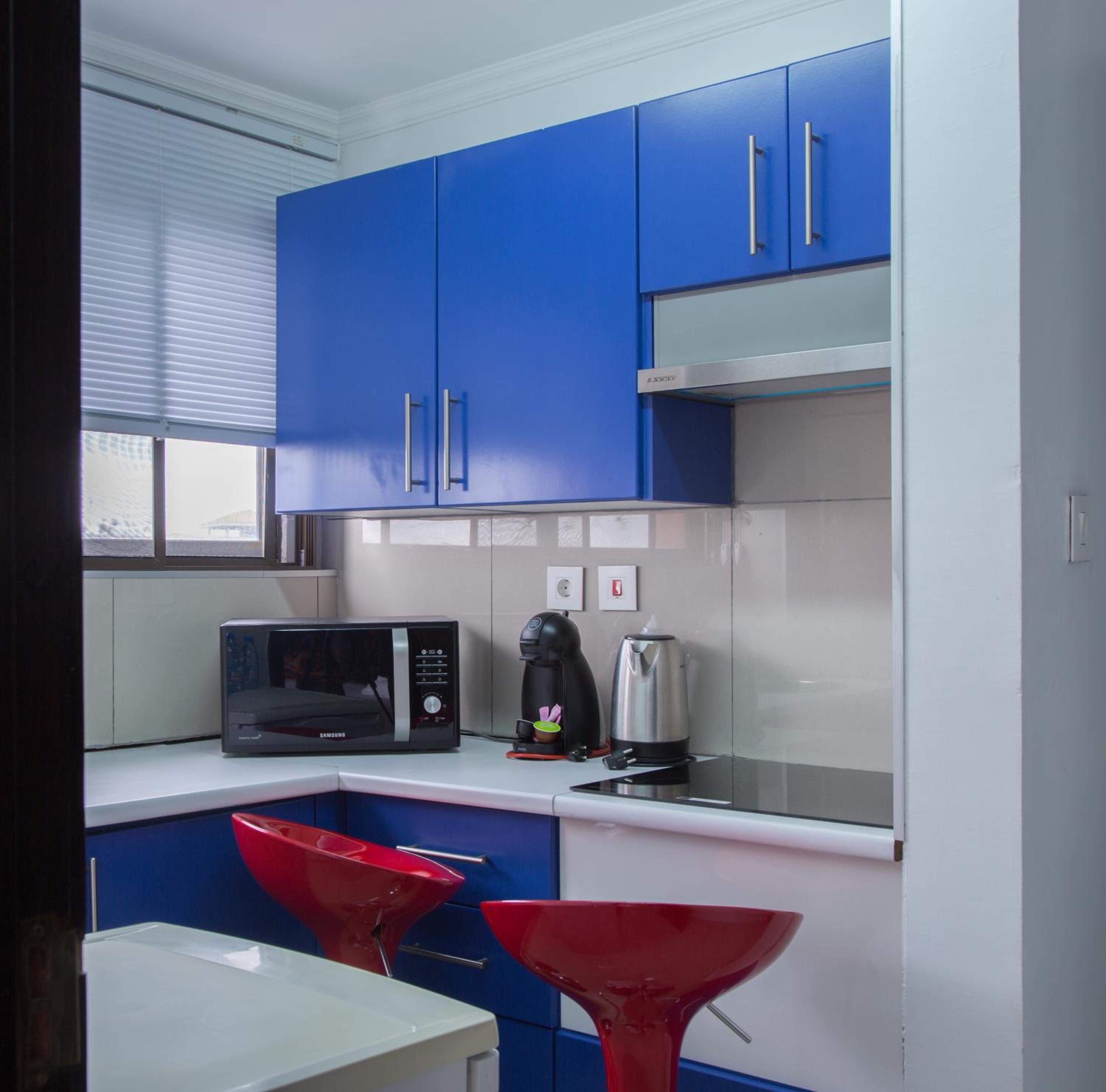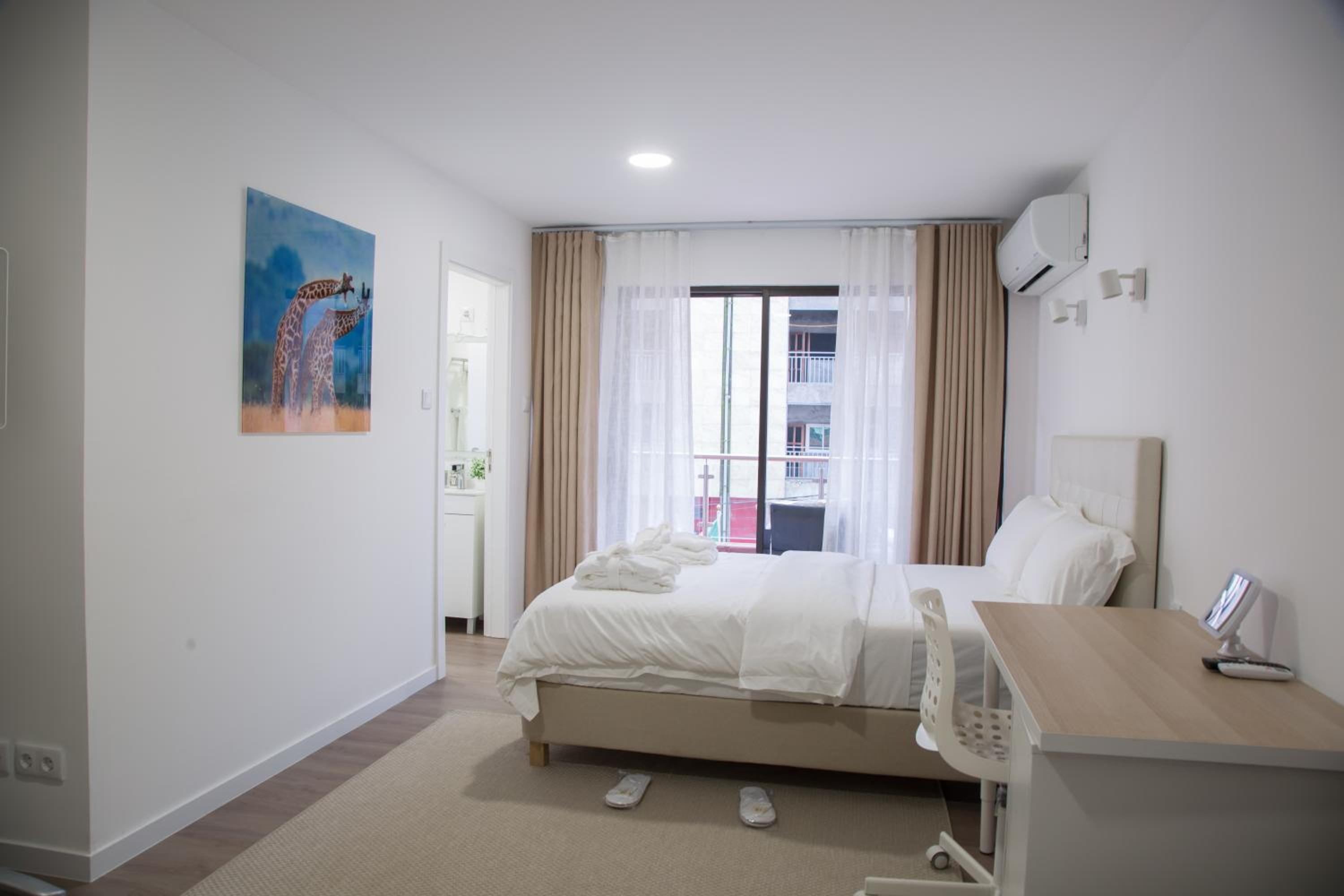 Each room is equipped with air conditioning, a flat-screen TV, a safety deposit box, and a private bathroom with premium toiletries. Some rooms even include a kitchen with modern appliances. Additionally, guests can enjoy a coffee machine, a desk, and complimentary WiFi in every room.