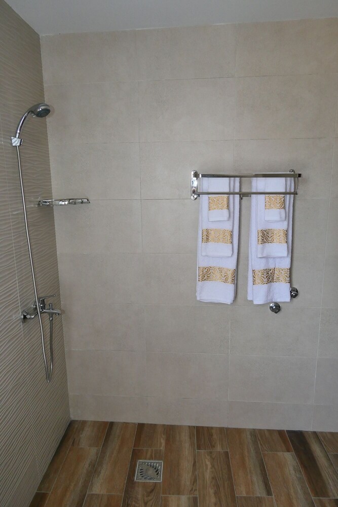 The bathrrom mainly the shower it is too small , no parking.