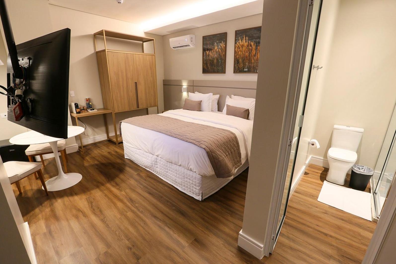 Quarto muito comfortável, limpo e agradável. Banheiro limpo, bem iluminado e toalhas fofinhas! Tinha tudo disponível e de fácil acesso. Café da manhã completo e atendentes muito gentis!