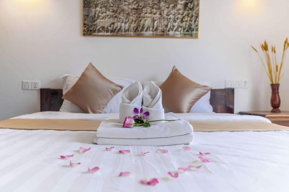Wonderful place and nicely view pool garden and room or bathrooms so bigger and clean the place so quickly easy to sleep just 1 km from royal palace national museum and Angkor super market and from pub street or old market and night market just 2 km away and from Angkor Wat temple just 5 km away I am strongly recommend to everyone owner or staff every helpful.