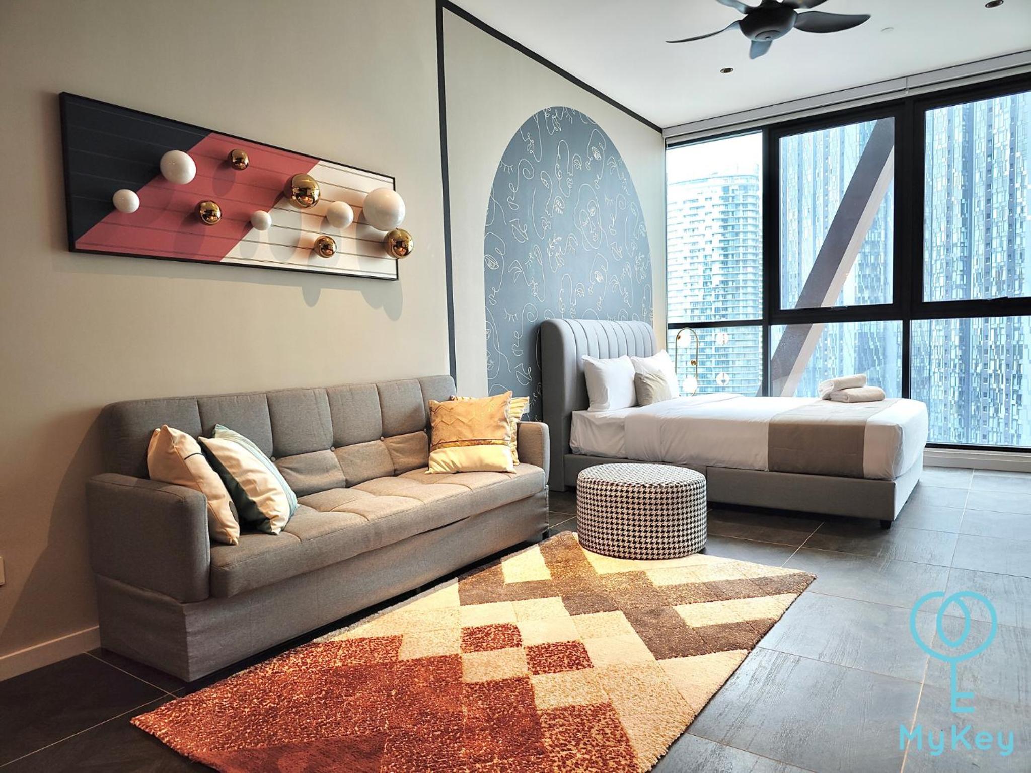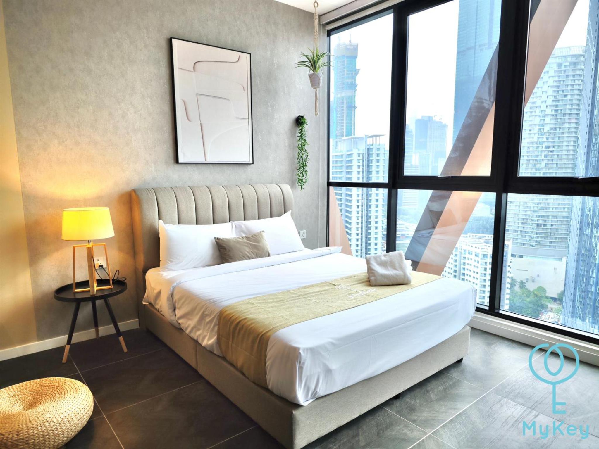 Experience 5-star accommodations with stunning city views, free WiFi, and premium amenities at Scarletz Suites KLCC by Mykey Global.