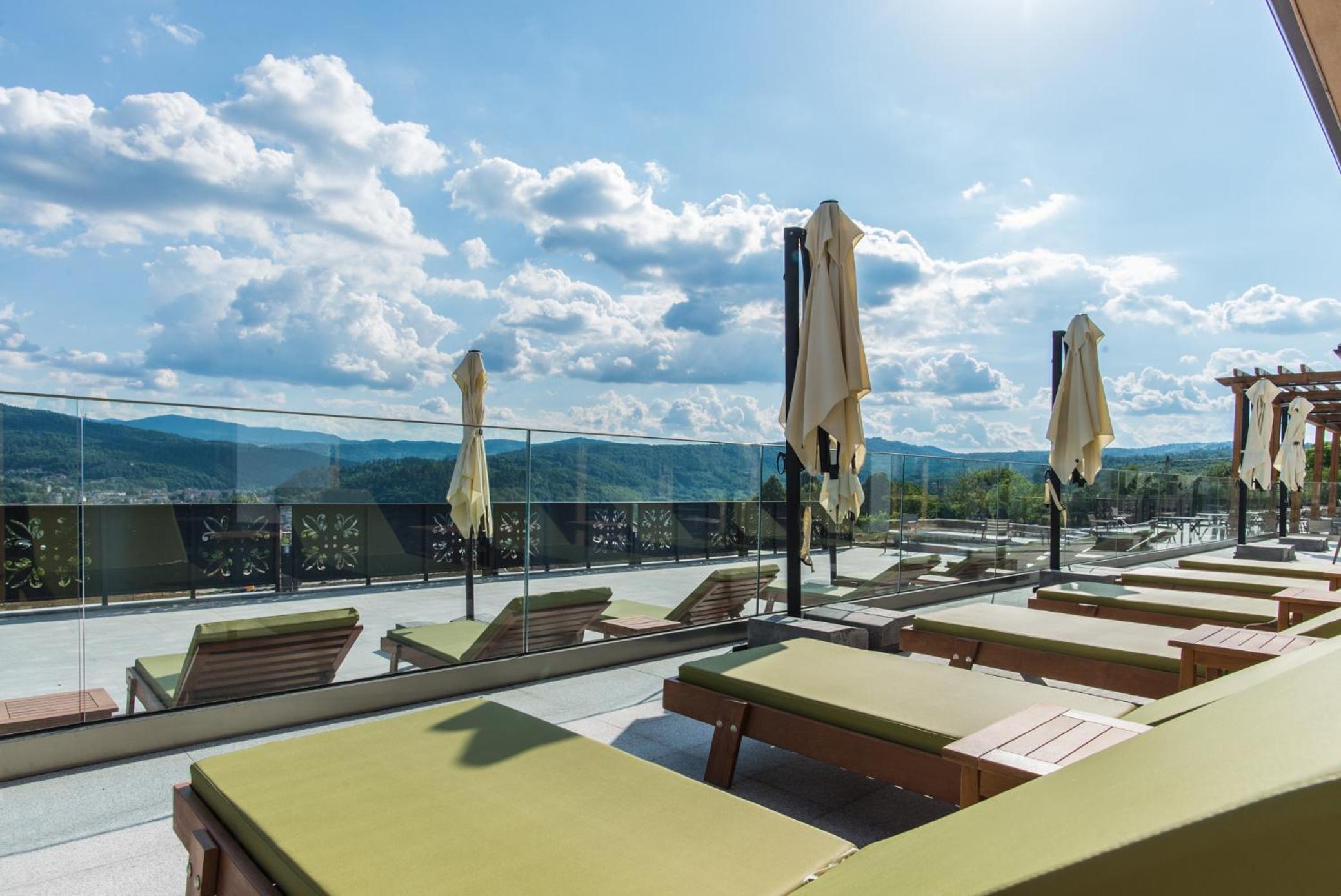 Beautiful hotel, lovely rooms, friendly staff. Great pool and sauna. Lovely views.