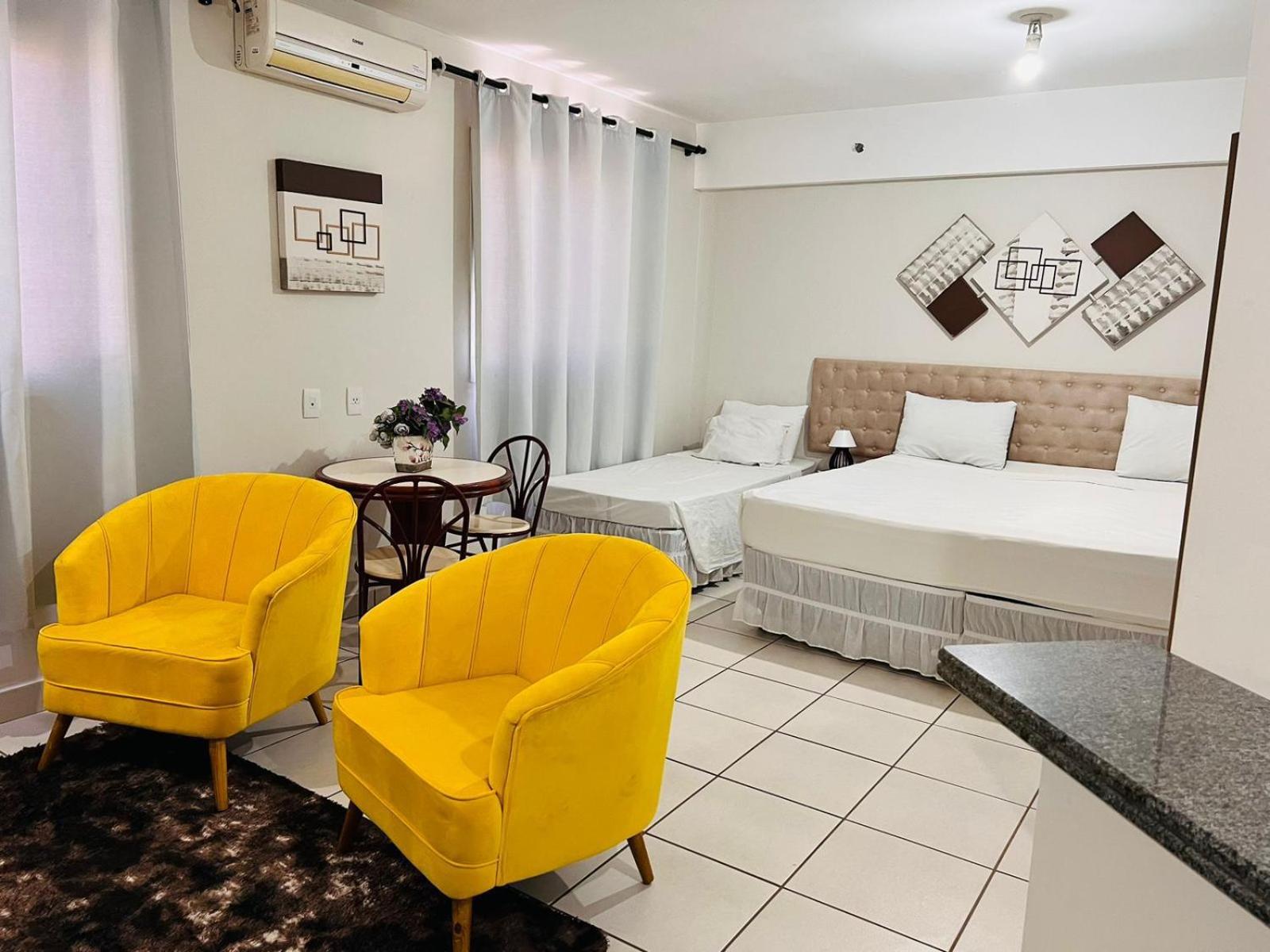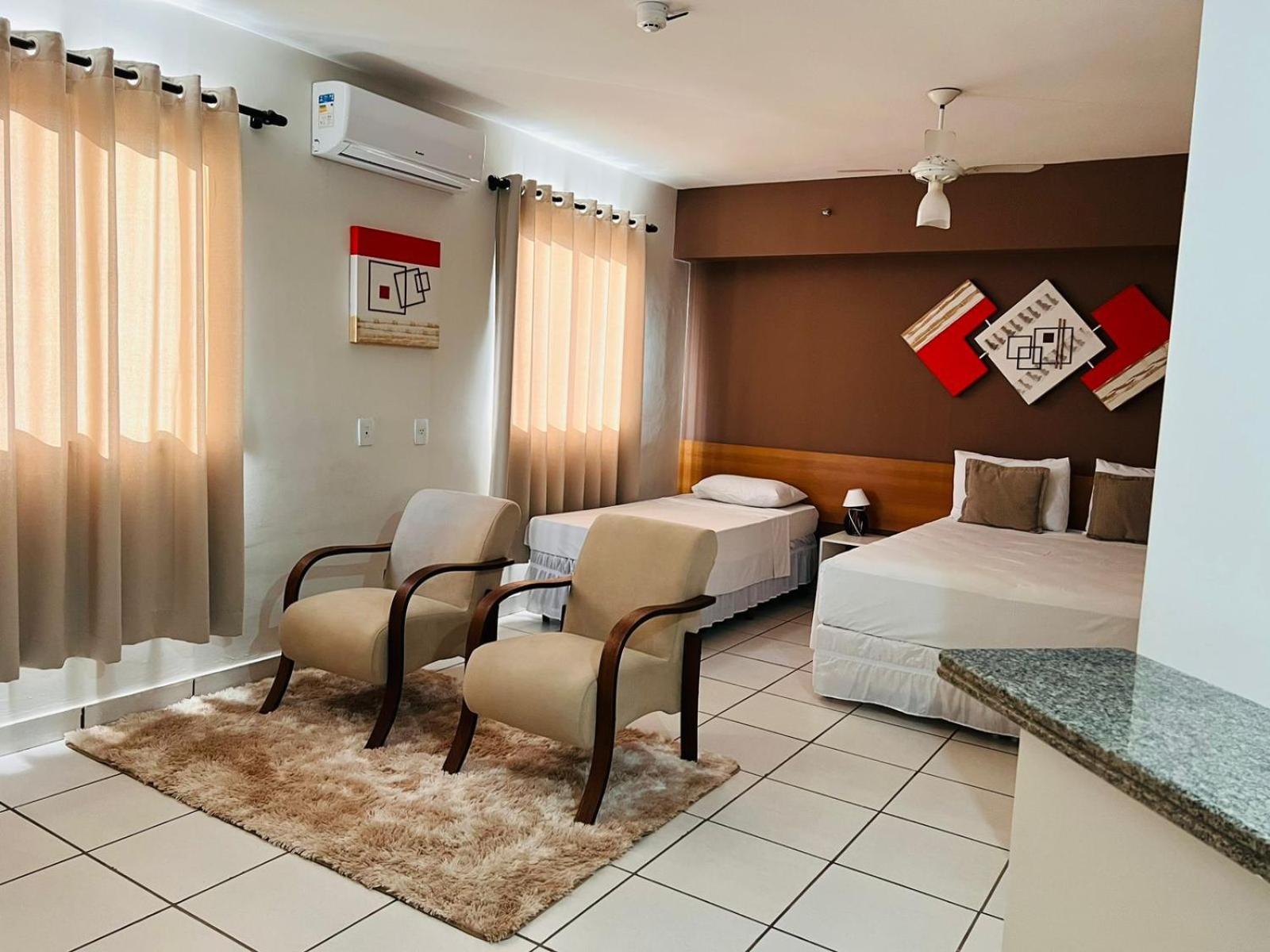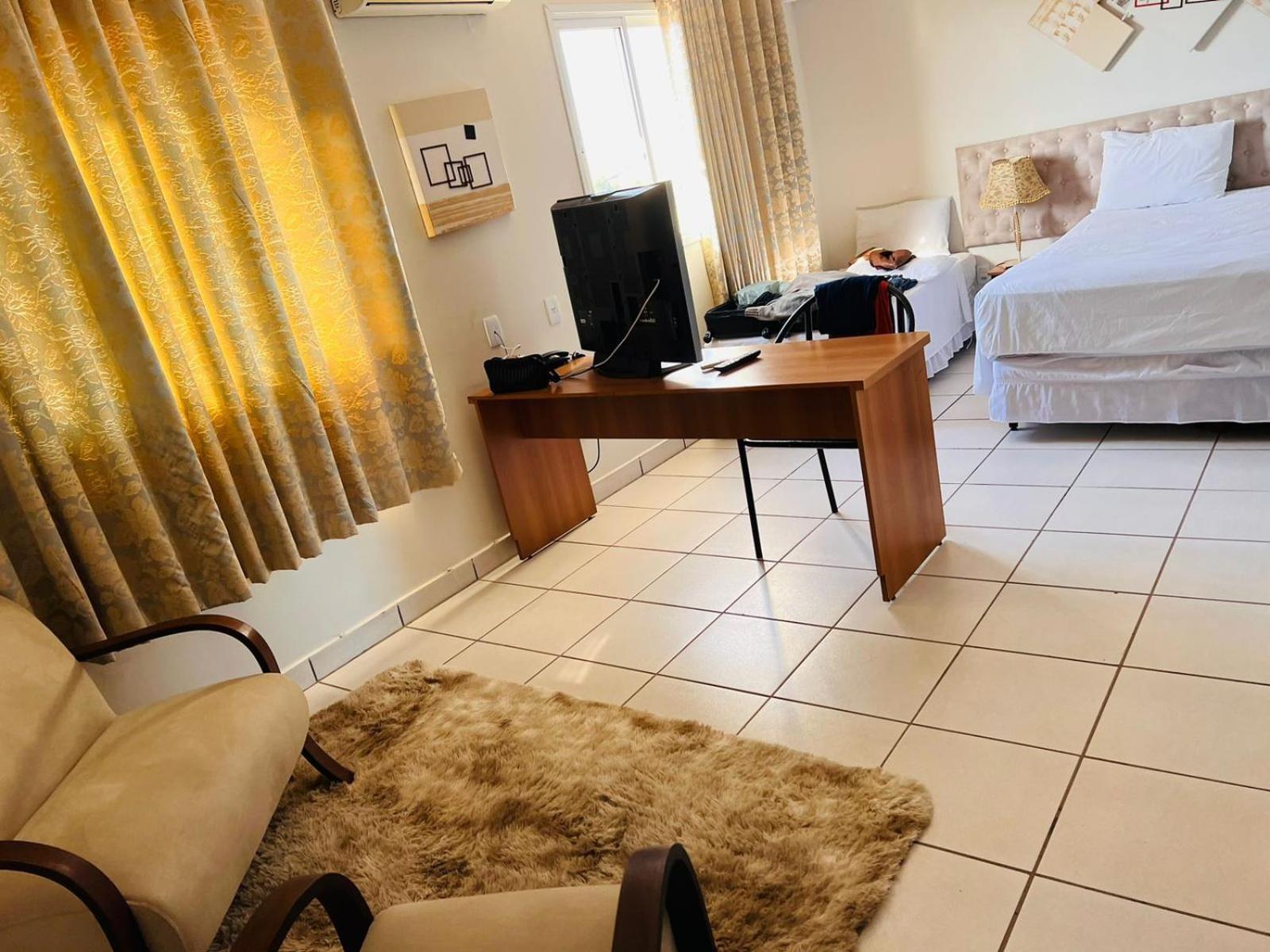 Tudo prático, limpo, organizado e adequado para a acomodação. Quarto super espaçoso! Ar condicionado, TV, poltronas e mesa para trabalho. Atender todas as minhas necessidades, inclusive para trabalhar, com disponibilidade de Wi-Fi com bom sinal.