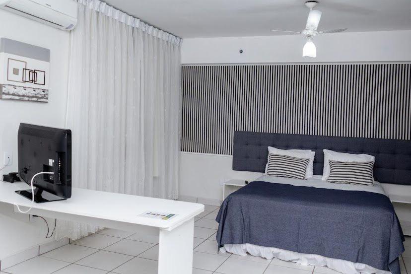 A TV é um pouco pequena para o tamanho do quarto. Mas é apenas um detalhe, porém que seria mais adequeado para conseguir assistir pela distância da cama e do suporte onde ela fica.