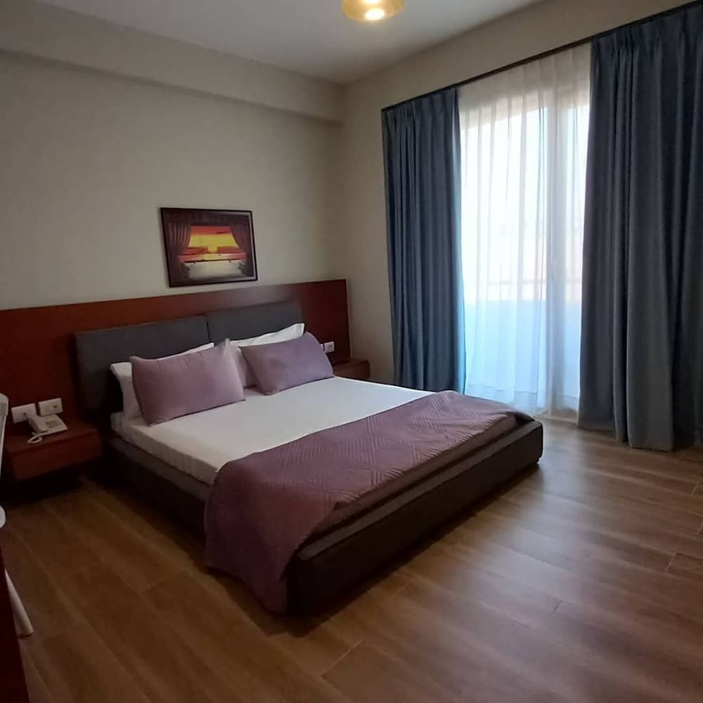 It was clean and in the middle of everything. Walking distance to stores and beach . Make sure you carry cash because most of places don’t except card in Albania. But hotel has restaurant and alcohol and you can pay with card . Also hotel has healthy free breakfast with so many options. Rooms are getting cleaned every day and pool was nice and clean . We went with 2 families every one was friendly. They speak English .