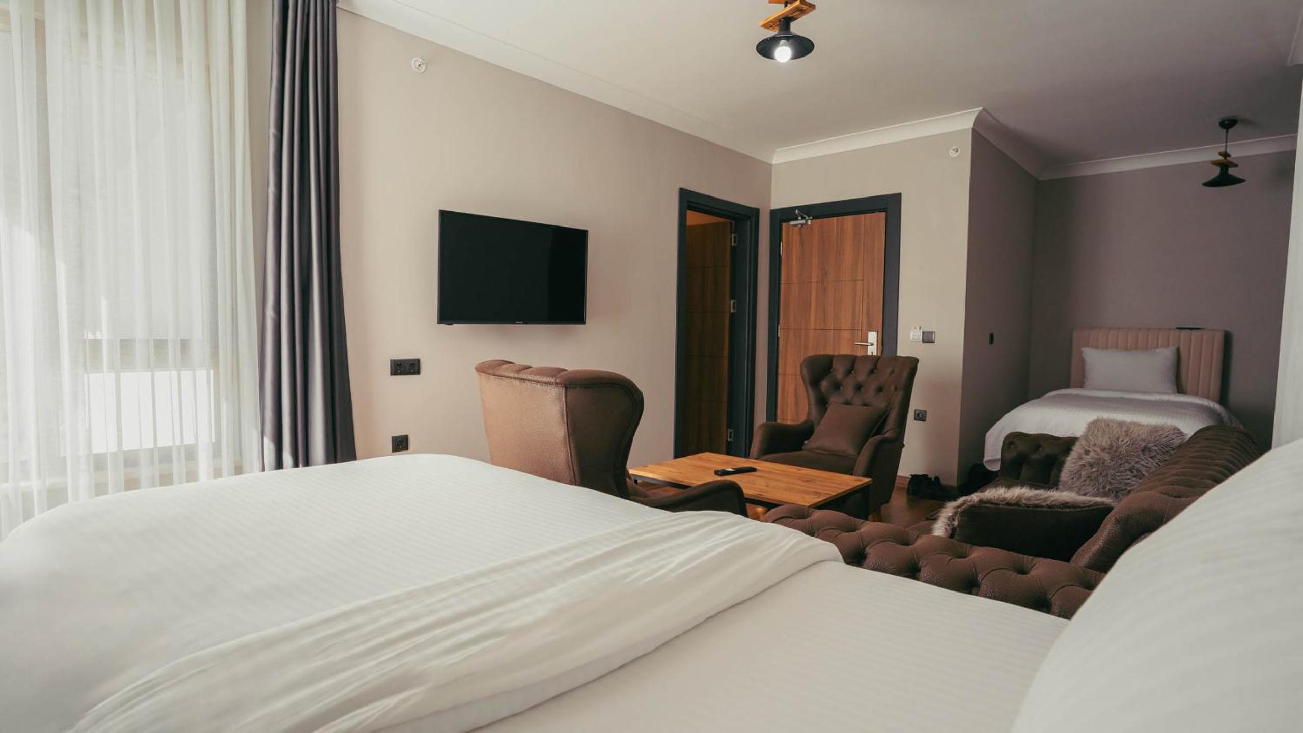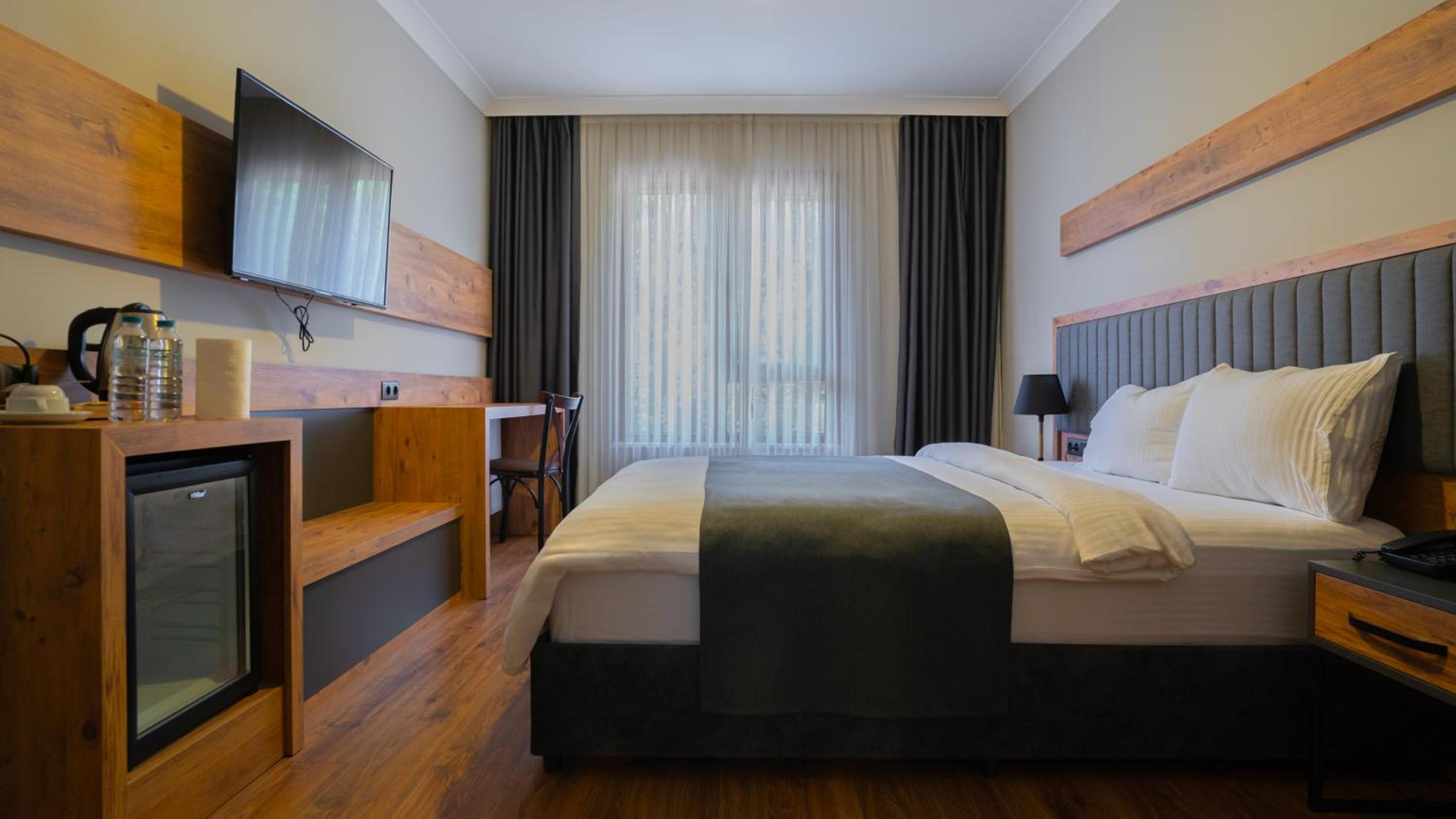Modern Comforts: Unwind in style in our well-equipped rooms featuring flat-screen TVs, minibars, and free WiFi. Enjoy the convenience of room service and 24-hour front desk assistance.