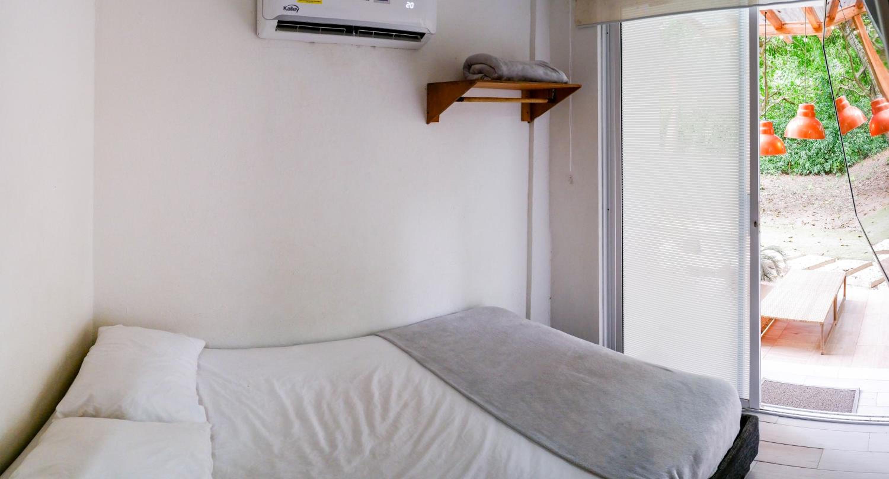 PodrÍan mejorar la escalera de acceso a las habitaciones, es irregular e inestable, lo que es peligroso. Las habitaciones notan falta de mantenimiento en la entrada y aseo exterior. Los baños no son comodos, y en especial las duchas presentaban un deterioro y suciedad riesgosa. Incluso es mejor bañarse directamente en la ducha de la piscina.