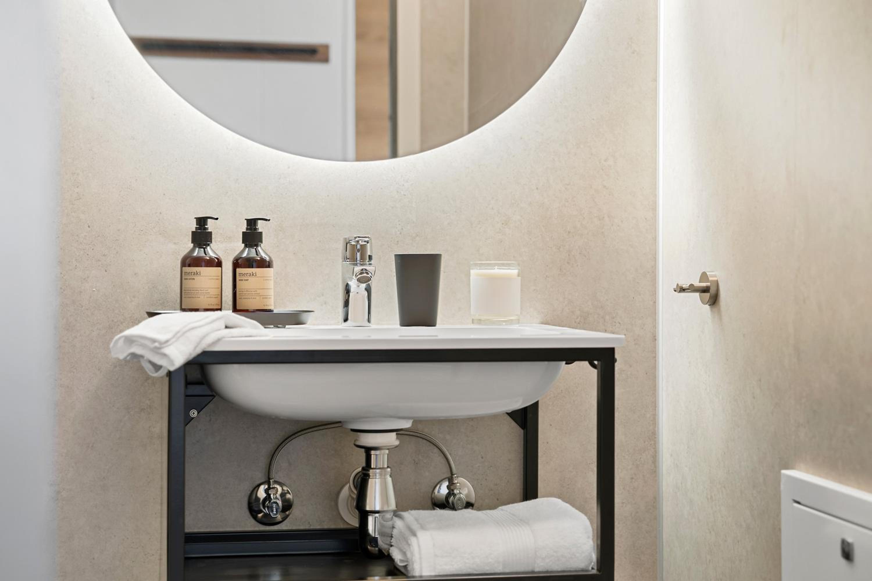 Kunne ønske at der var ekstra lys og en stikkontakt ved spejlet i rummet, så det kan bruges til make up og hår, imens en anden er i bad.