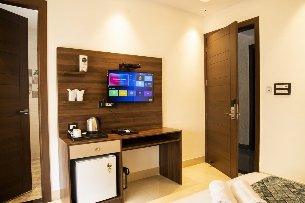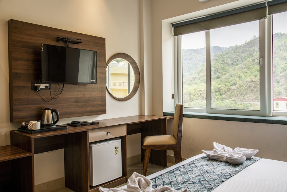 Stayed here for one day. Room was nice, except the tv set top box was not recharged, so it wasn't working if you want to watch something at night time. The wifi is slow. The location on google maps takes you to the wrong lane, while actual hotel is one lane ahead of it which causes incoveniece as you have to turn the car on slopes. Car parking is small (6 cars approx), the staff is not so friendly, I found it okish behaviour. Food is on the average side, the breakfast had limited items. Overall, not worth the price. Only upside I found is, it's in the prime location, close to many shops, and laxman jhula(15 mins walk) but it was closed due to construction (may be closed for a while now) but the hotel guy told us we can visit it.