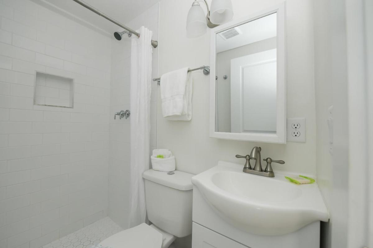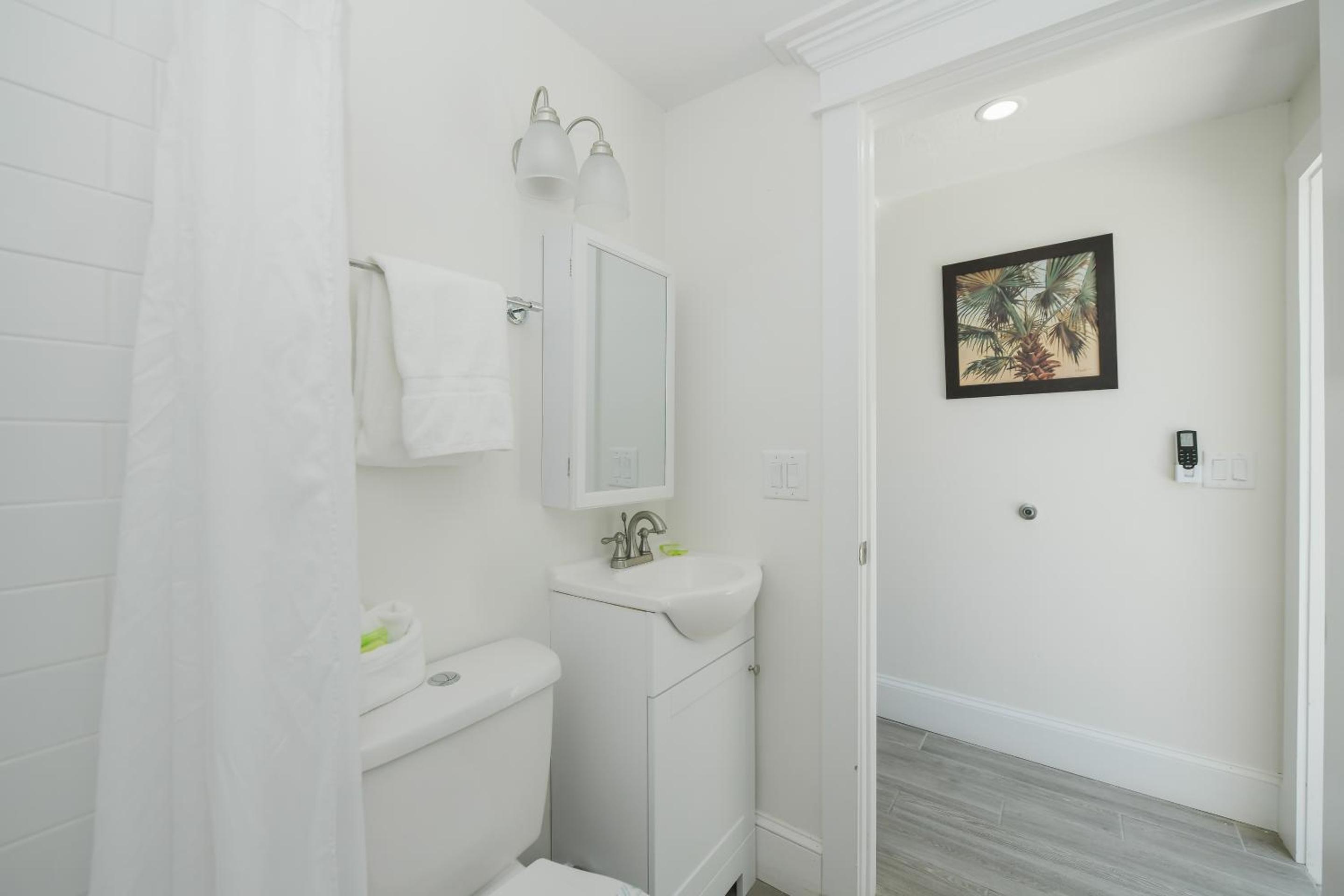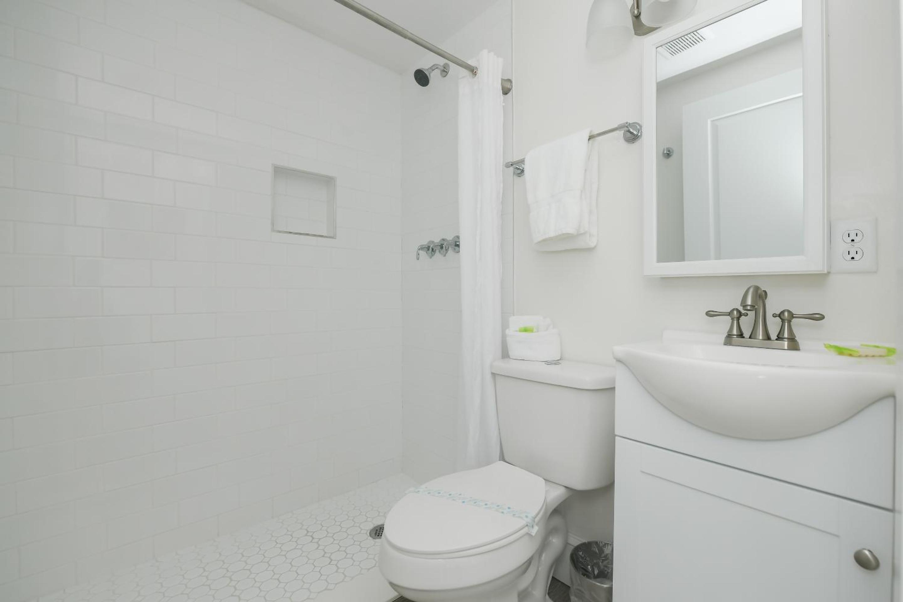 The bathroom and shower beautiful