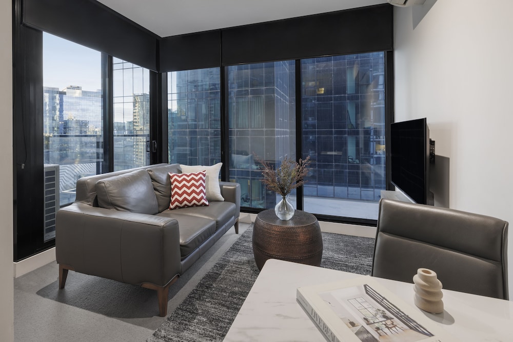 Imagine on Southbank is your urban oasis in the heart of Melbourne. Recreational Amenities include an indoor pool and a fitness center, while featured amenities offer convenience with dry cleaning services and luggage storage. Fully Equipped Rooms with kitchens, Smart TVs, and complimentary Wi-Fi provide the comfort of home. Explore nearby attractions such as the Melbourne Skydeck and Crown Casino, all within walking distance. We invite you to experience the vibrant city life with us at Imagine on Southbank. Book now and indulge in the best of Melbourne!