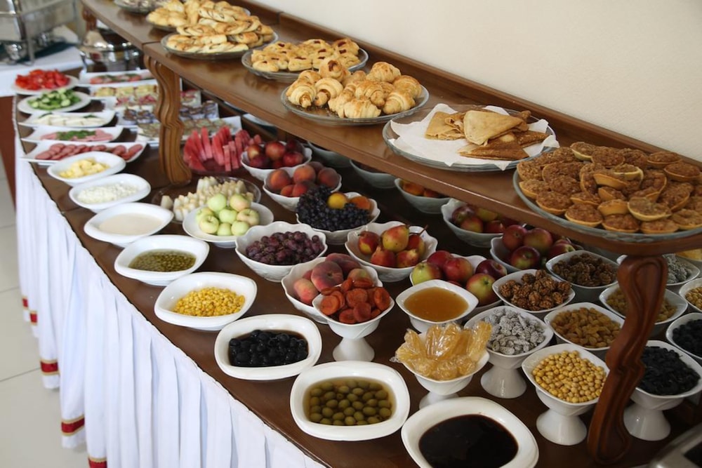 Dine at our on-site restaurant offering delicious meals or visit the grocery store for a quick snack. Start your day right with a complimentary buffet breakfast and unwind in the evening at our television-equipped common area. Your stay at Grand Nur awaits!