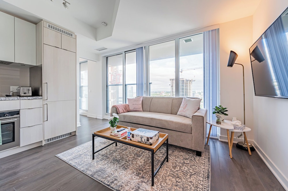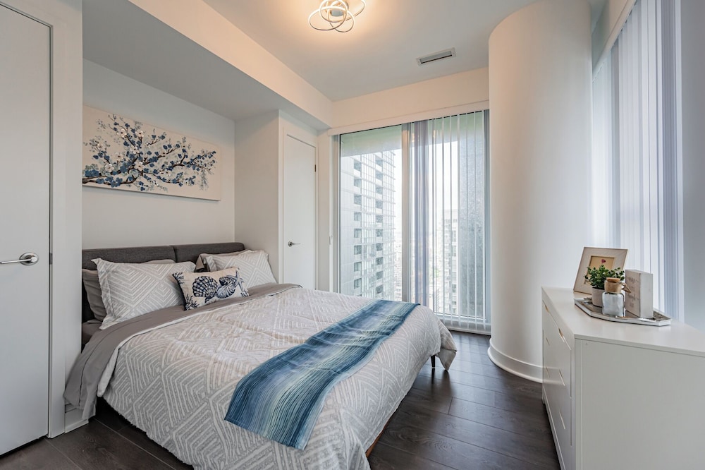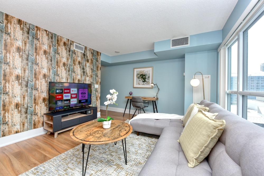 Blue Jay fans would love the location of this property - across the street from Rogers Center access. The check-in and check out was easy, communication was excellent, the condo was spacious, immaculately clean and perfect for our 5 night stay! Convenient location to several landmarks, restaurants, shopping and a quick 1/2 drive to the airport. Elevators posed some inconvenience as all were not working. Otherwise absolutely loved it! Will be there again and will spread the word on this outstanding property!
