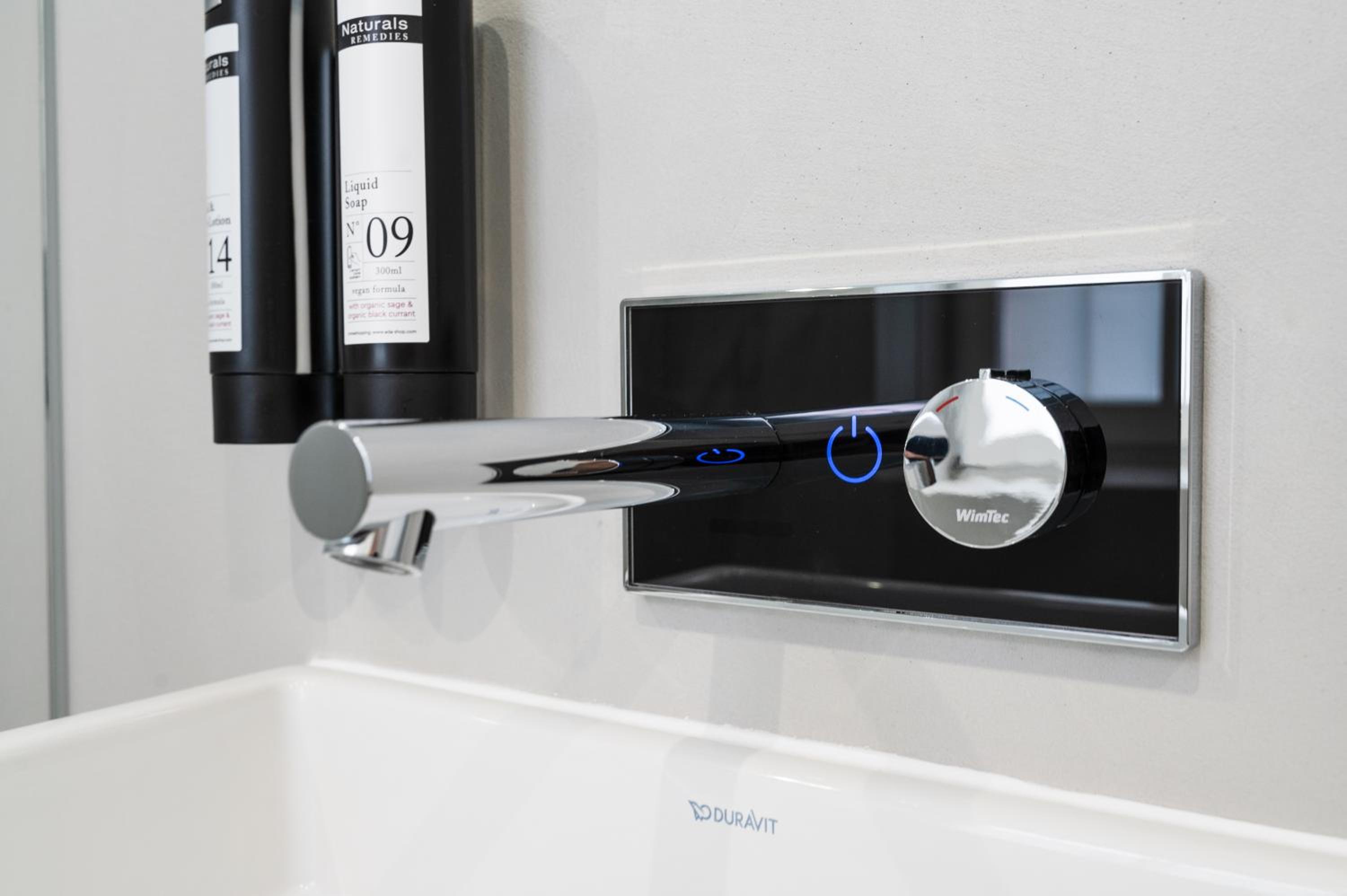 leider funktionierte die Hypermoderne digital gesteuerte Dusche nicht optimal, sondern sie unterbrach den Wasserfluss und war dann schwer, wieder anzustellen…